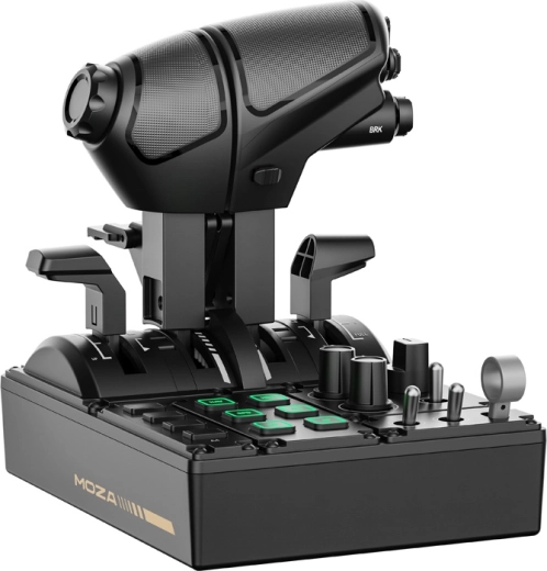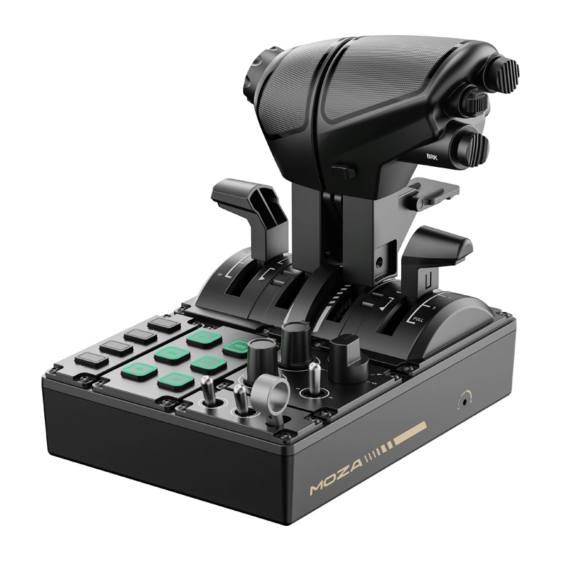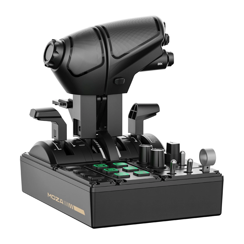 Bohatá sada prepínačov, otočných voličov a podsvietených tlačidiel rozširuje kontrolu nad systémami lietadla. Plná kompatibilita s ekosystémom MOZA bez potreby zložitého nastavovania.