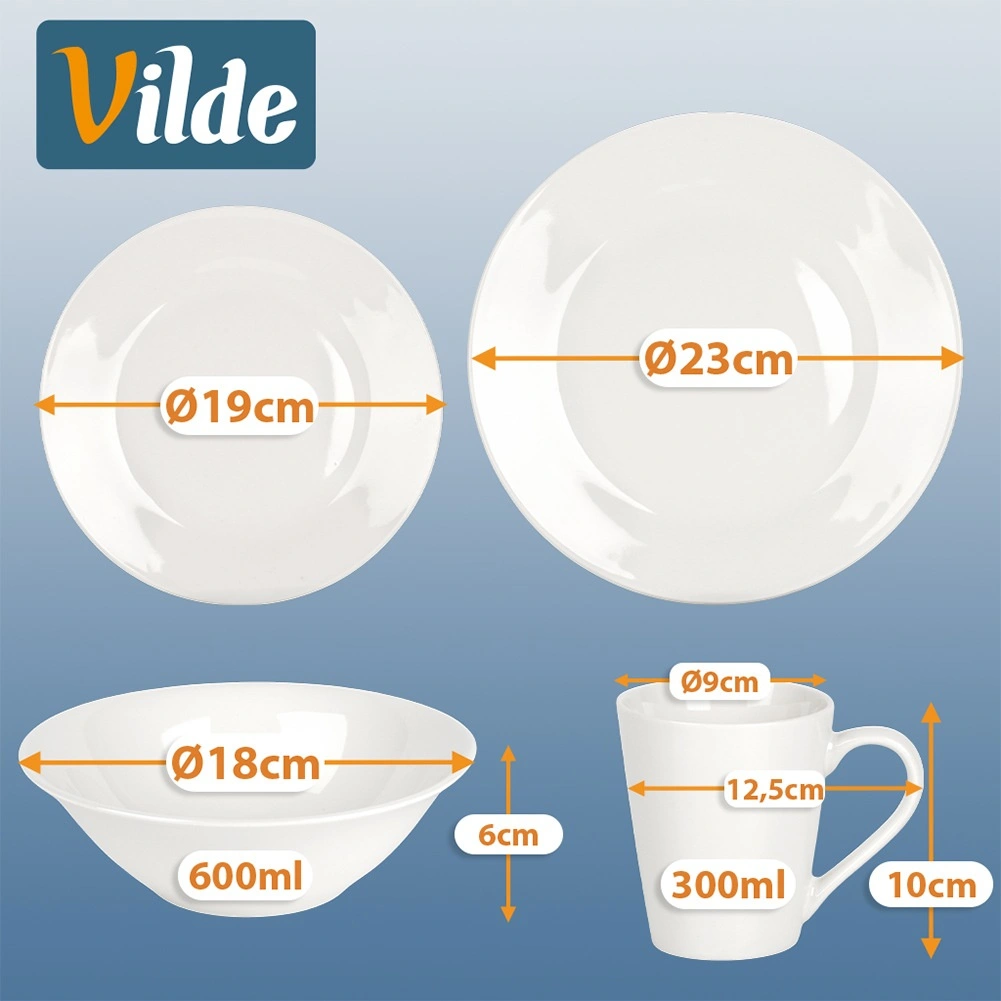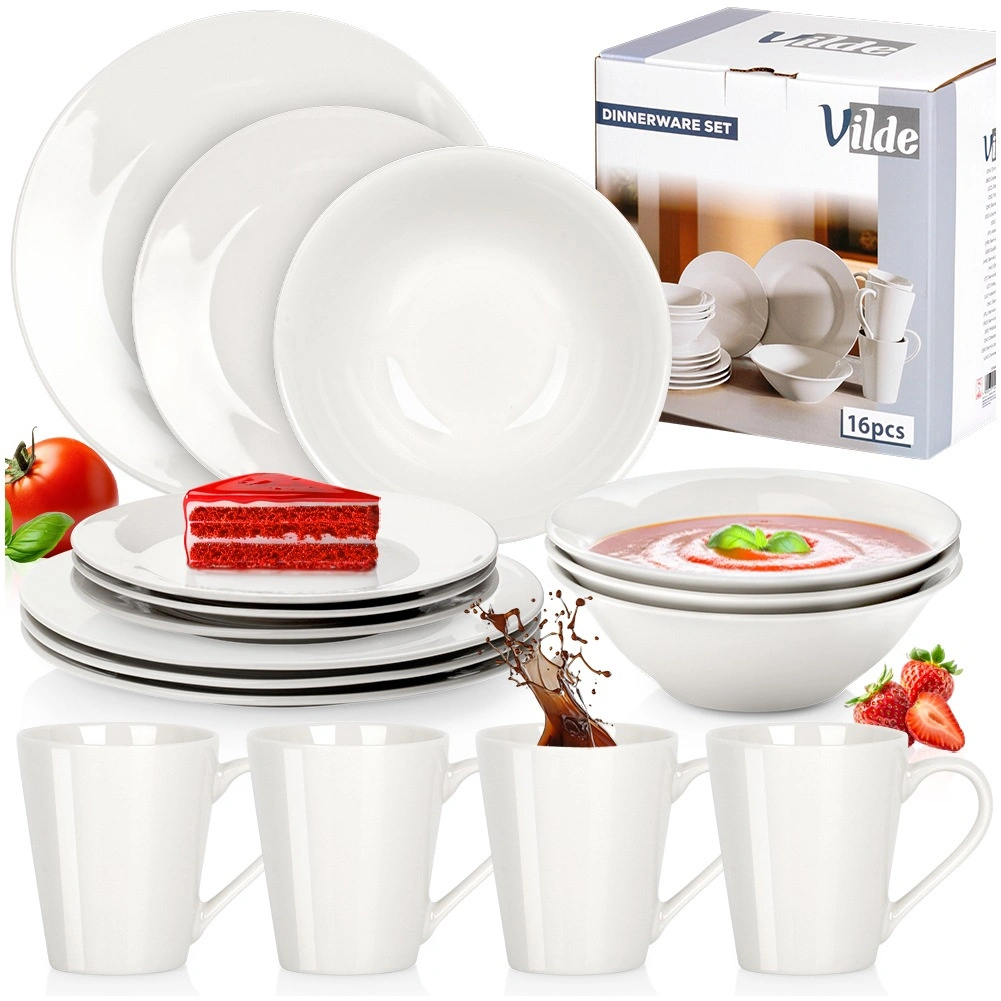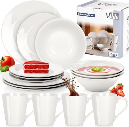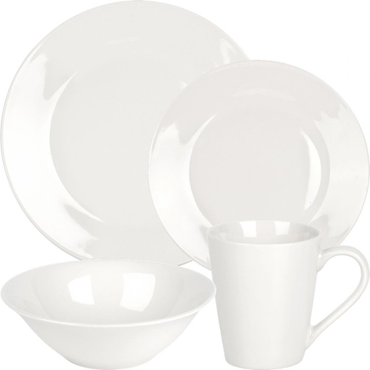 Táto 16-dielna porcelánová súprava je praktickým a štýlovým riešením pre rodinné stolovanie. Vďaka hladkému glazovanému povrchu a nadčasovej bielej farbe ľahko zladíte riad s akýmkoľvek prestieraním. Kvalitný porcelán zaistí dlhú životnosť a pohodlné používanie doma aj v gastronómii.