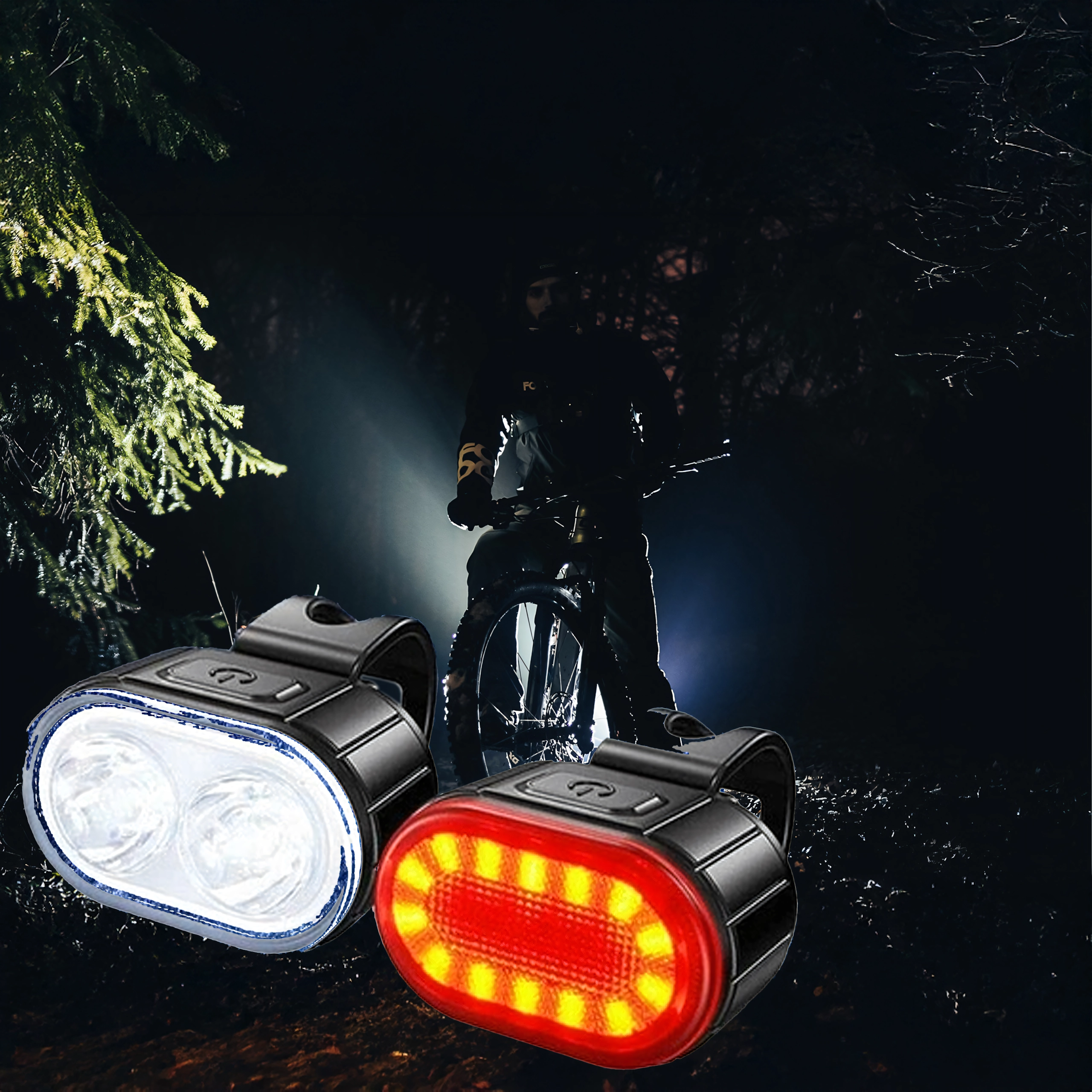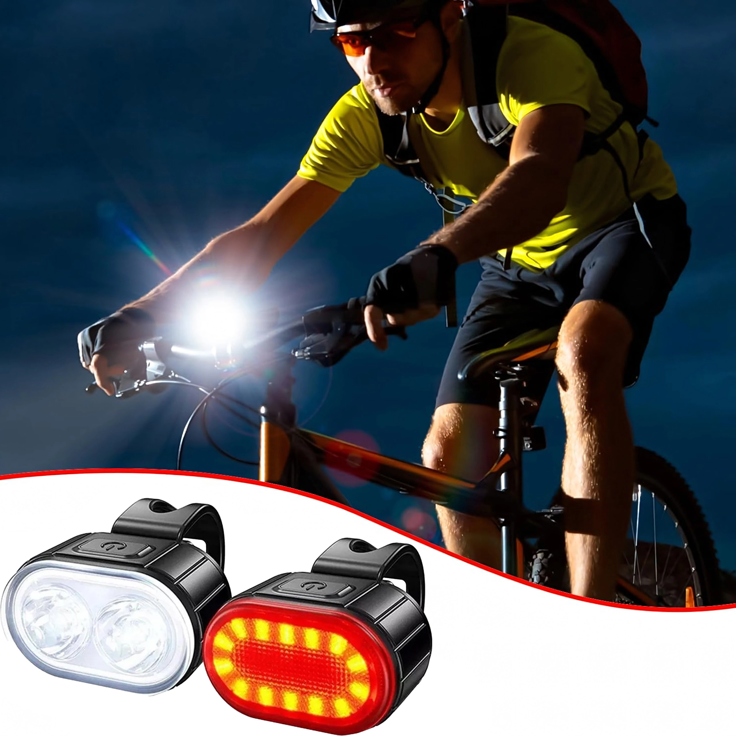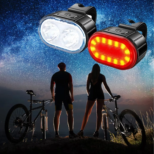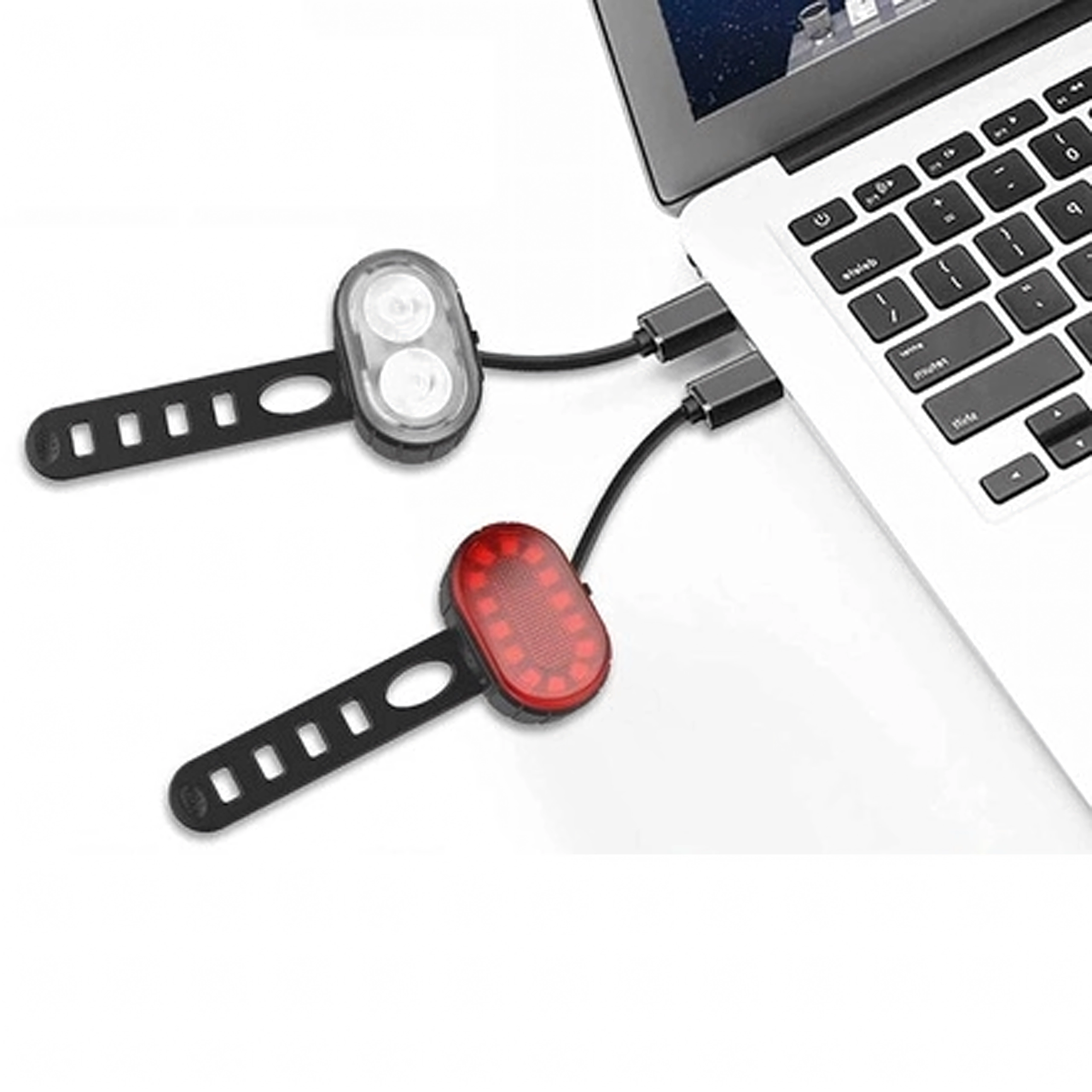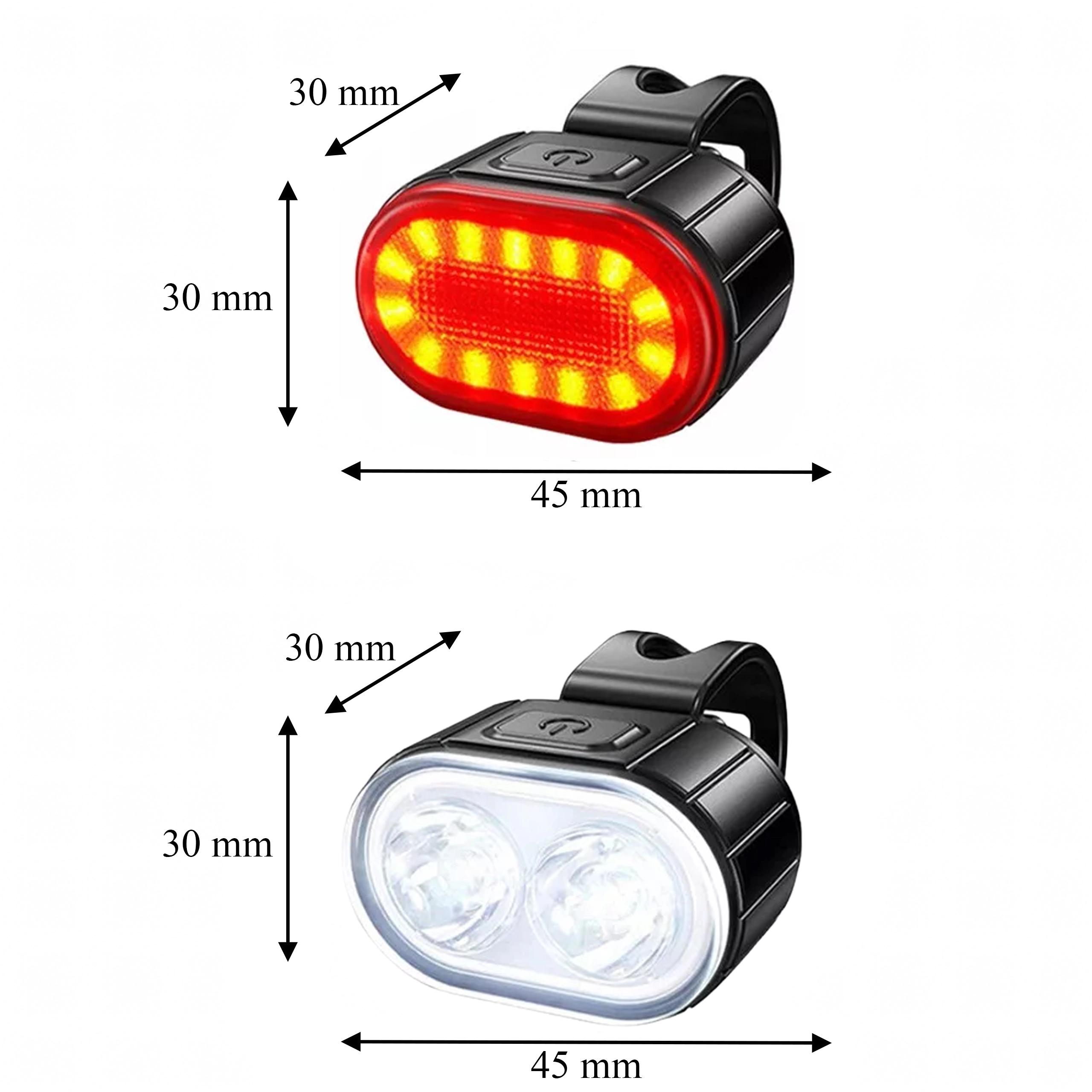 Sada LED svetiel na bicykel predné a zadné, USB nabíjacie, vodoodolná, 2 ks