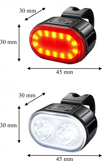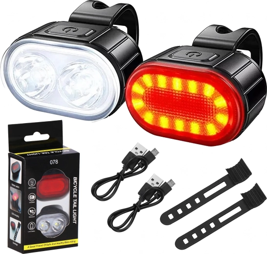 1× predné svetlo, 1× zadné svetlo, USB kábel(y), upevňovacie pásiky