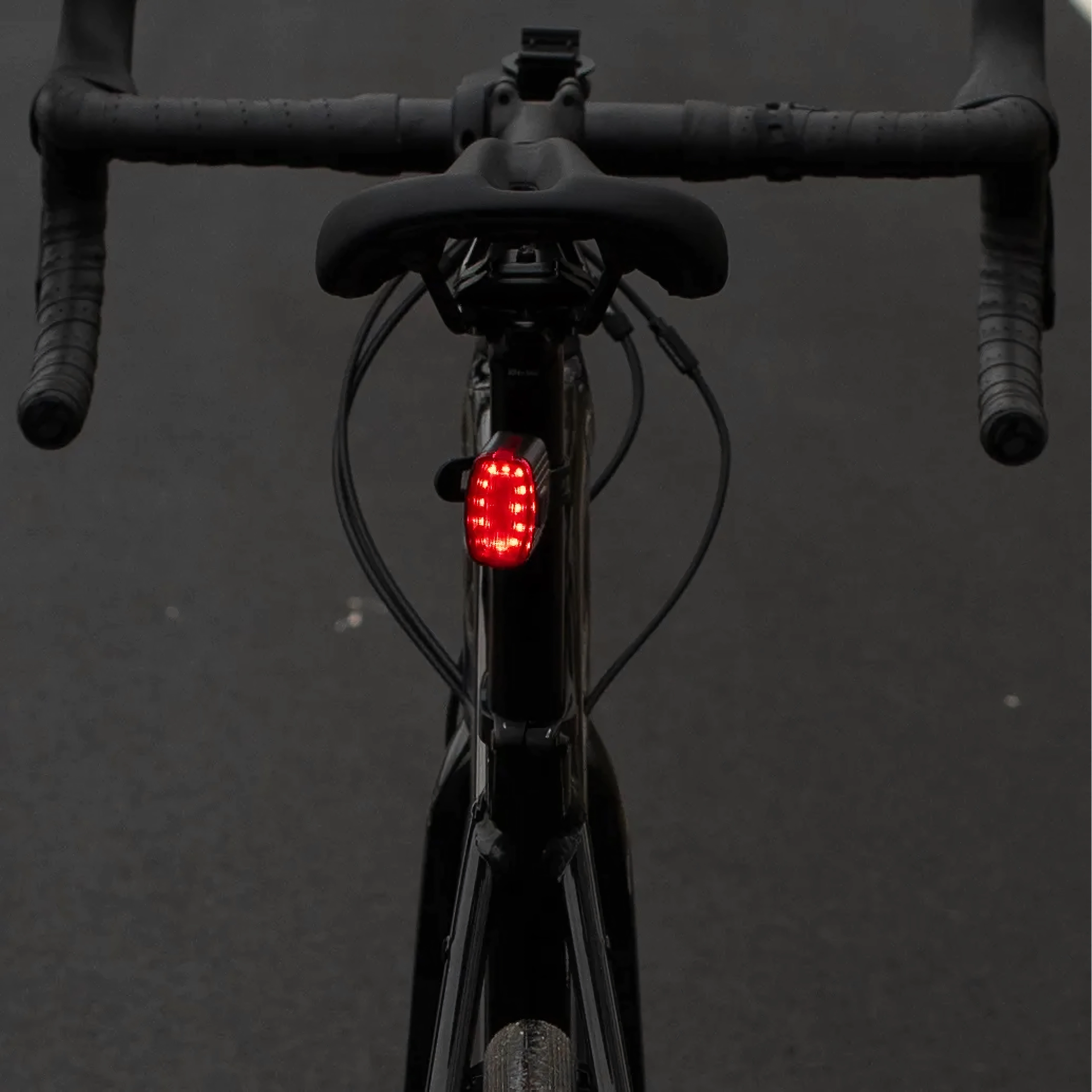 Červené LED svetlo s viacerými režimami výrazne upozorní vodičov aj cyklistov za vami. Ľahké uchytenie na sedlovku pomocou elastického pásika.