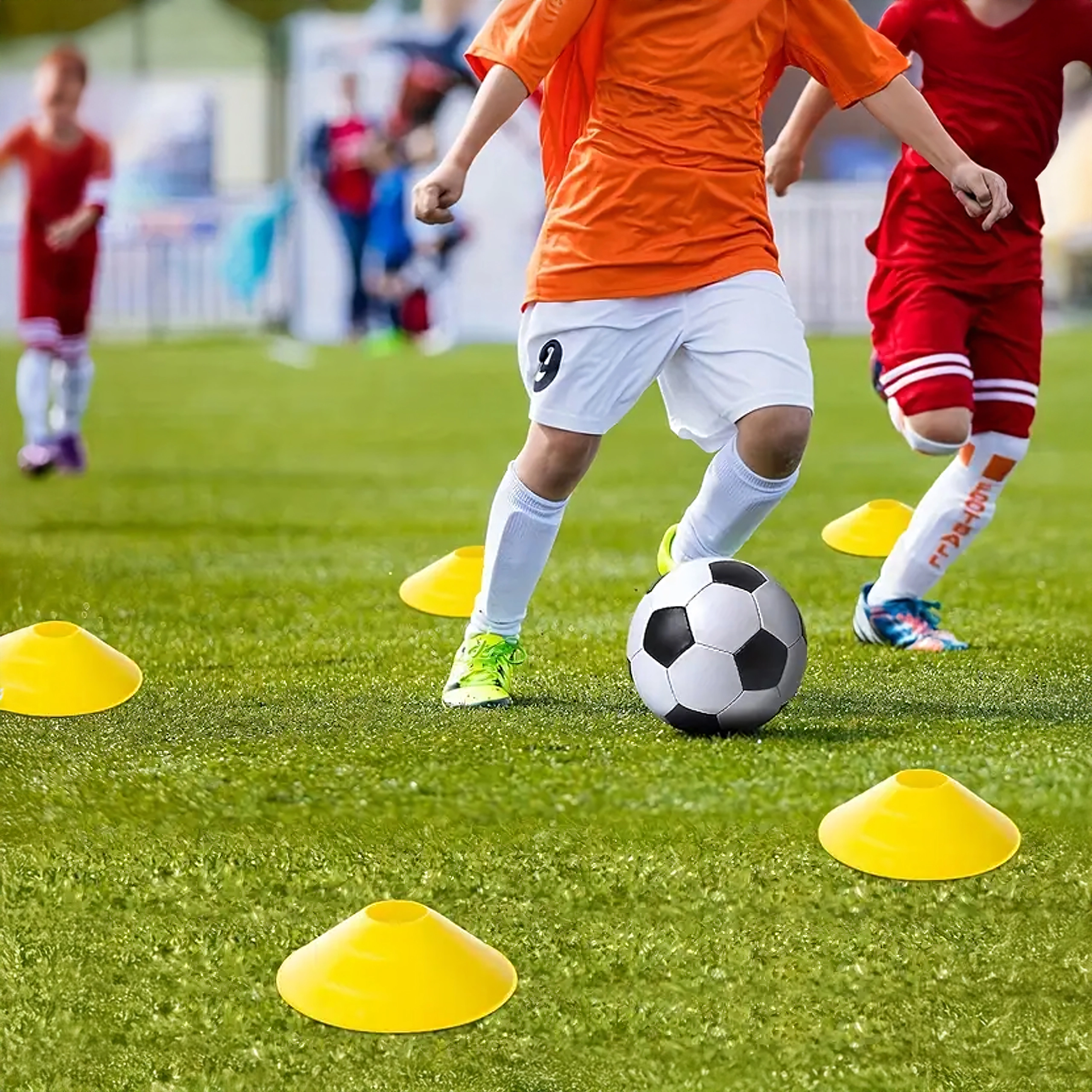 Nízko-profilové prekážky a výrazné kužele budujú koordináciu, odraz a zmeny smeru. Skvelé na technické cvičenia vo futbale, atletike aj tímových športoch.