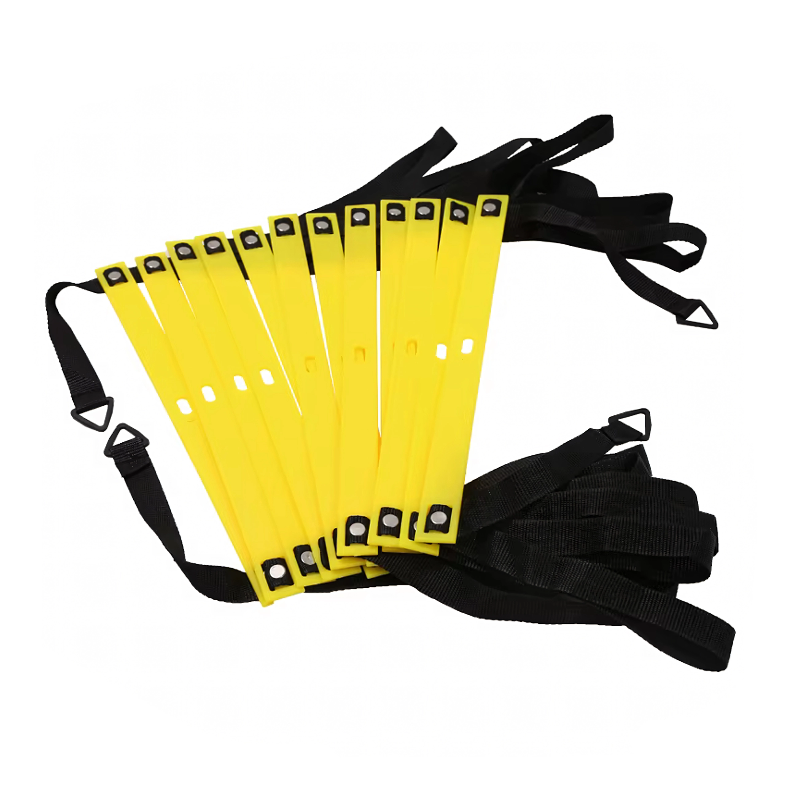 Ploché žlté priečky na pevných popruhoch možno jednoducho posúvať. Ideálne na rýchle kroky, laterálny pohyb a zlepšenie rovnováhy aj rytmu behu.