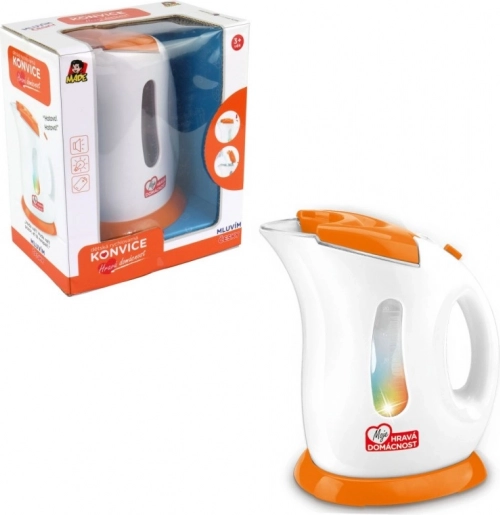 Detská rýchlovarná kanvica 21 cm na batérie s českými hláškami. Bezpečný plast, vek 3+, napájanie 2× AA. Ideálny doplnok do detskej kuchynky.