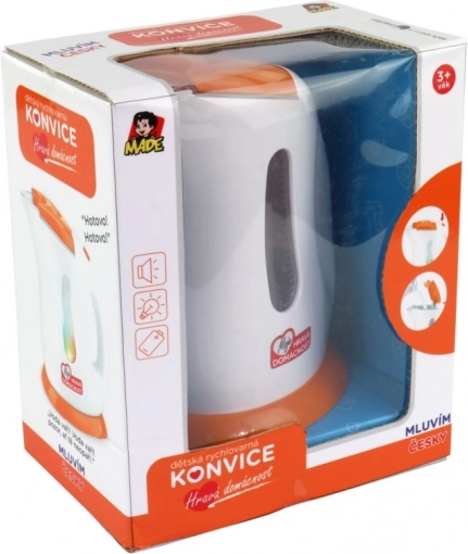 Táto detská rýchlovarná kanvica je realistický doplnok do každej hračkárskej kuchynky. Vďaka zvukovým českým hláškam prináša autentický zážitok z varenia a podporuje zábavné učenie formou hry. Bezpečné prevedenie z odolného plastu je ideálne pre deti od 3 rokov.