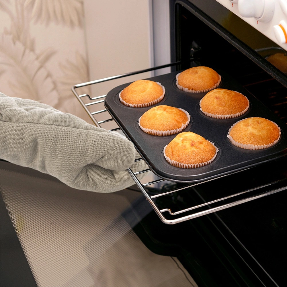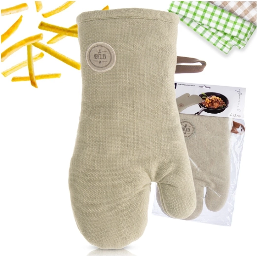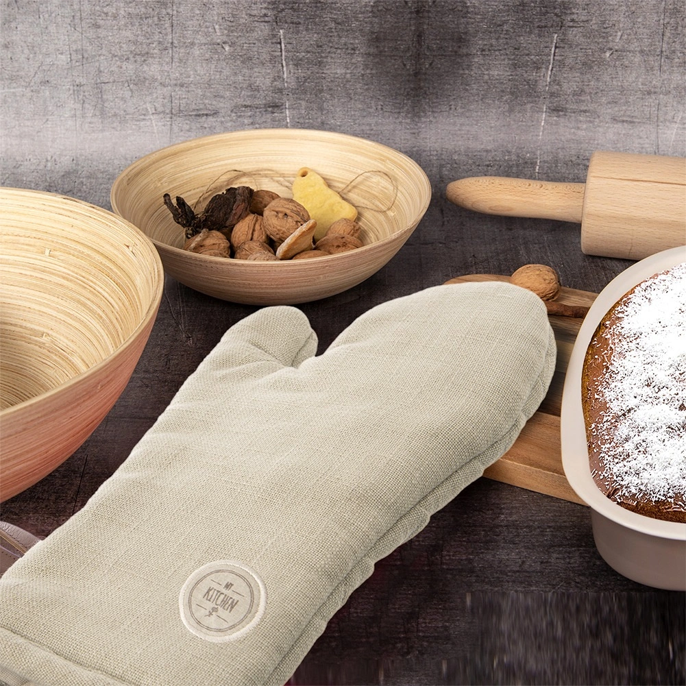 Chňapka GREENISH je vyrobená z kvalitnej 100% bavlny, ktorá je príjemná na dotyk a zároveň odolná voči vysokým teplotám. Jej premyslený tvar s oddeleným palcom poskytuje istý a bezpečný úchop plechov, hrncov aj panvíc. Elegantná olivová farba doplní modernú aj vidiecku kuchyňu.