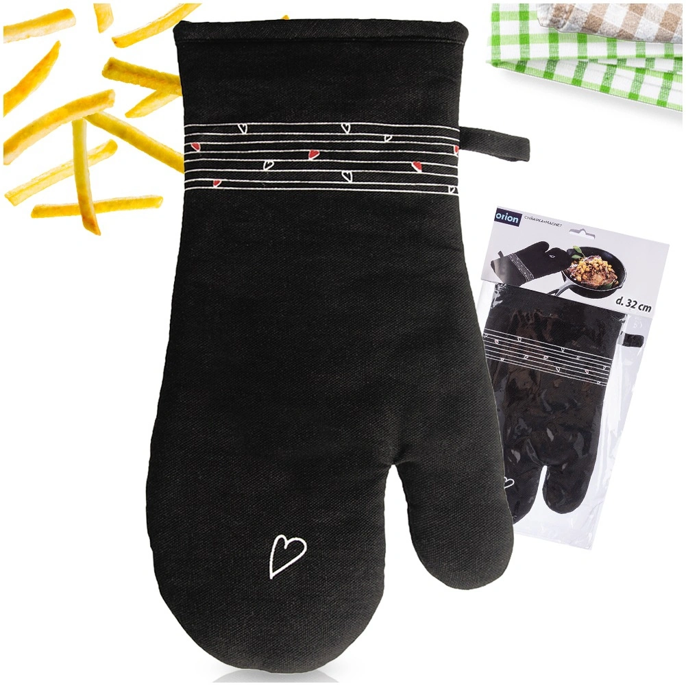 Bavlnená kuchynská rukavica s magnetom čierna Srdce 32 cm