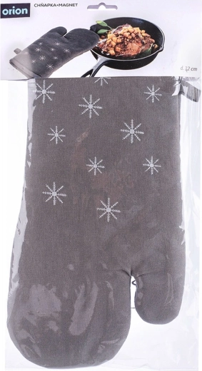 Praktická kuchynská chňapka zo 100% bavlny v elegantnej sivej farbe so zimným motívom zaistí spoľahlivú ochranu pred teplom pri varení a pečení. Vďaka univerzálnej veľkosti 17,5 × 32 cm sadne na pravú aj ľavú ruku, má všitý magnet a pútko na jednoduché zavesenie a uloženie. Možno ju prať do 30 °C. Overená kvalita značky ORION.