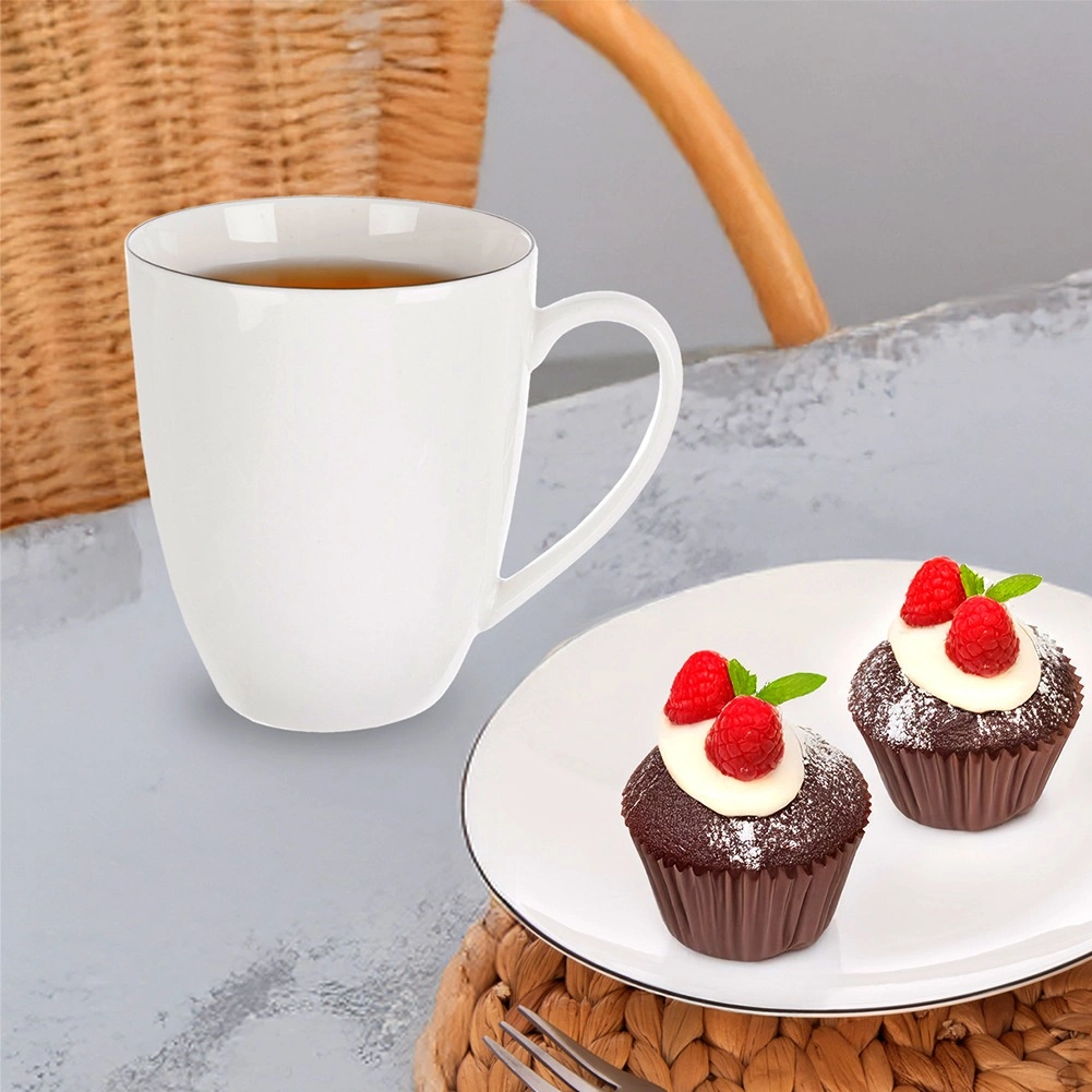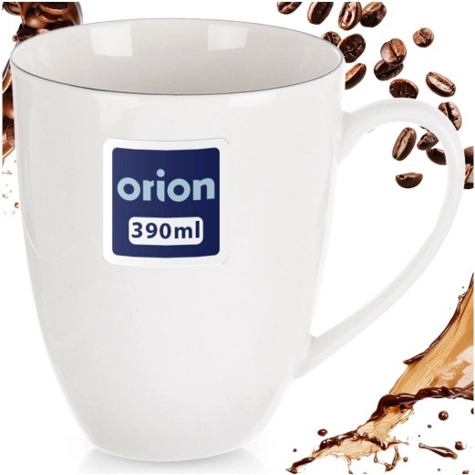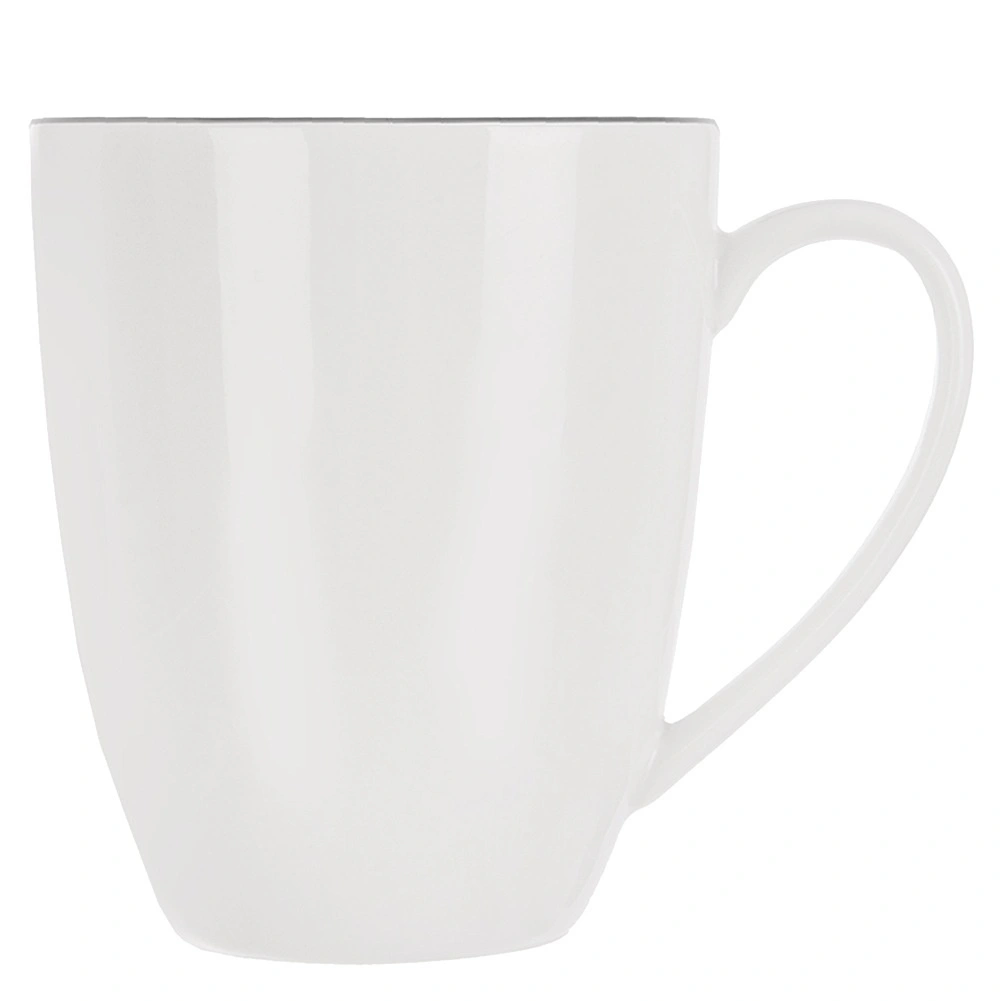 Elegantný biely porcelánový hrnček DECORA s objemom 390 ml je ideálny na kávu, čaj aj kakao. Má klasický dizajn s tenkou čiernou linkou, pohodlné ucho a je vhodný do umývačky aj mikrovlnky – perfektný na každodenné použitie doma aj v kancelárii.