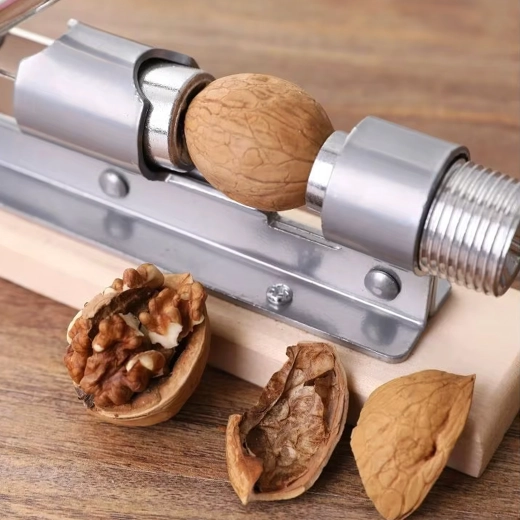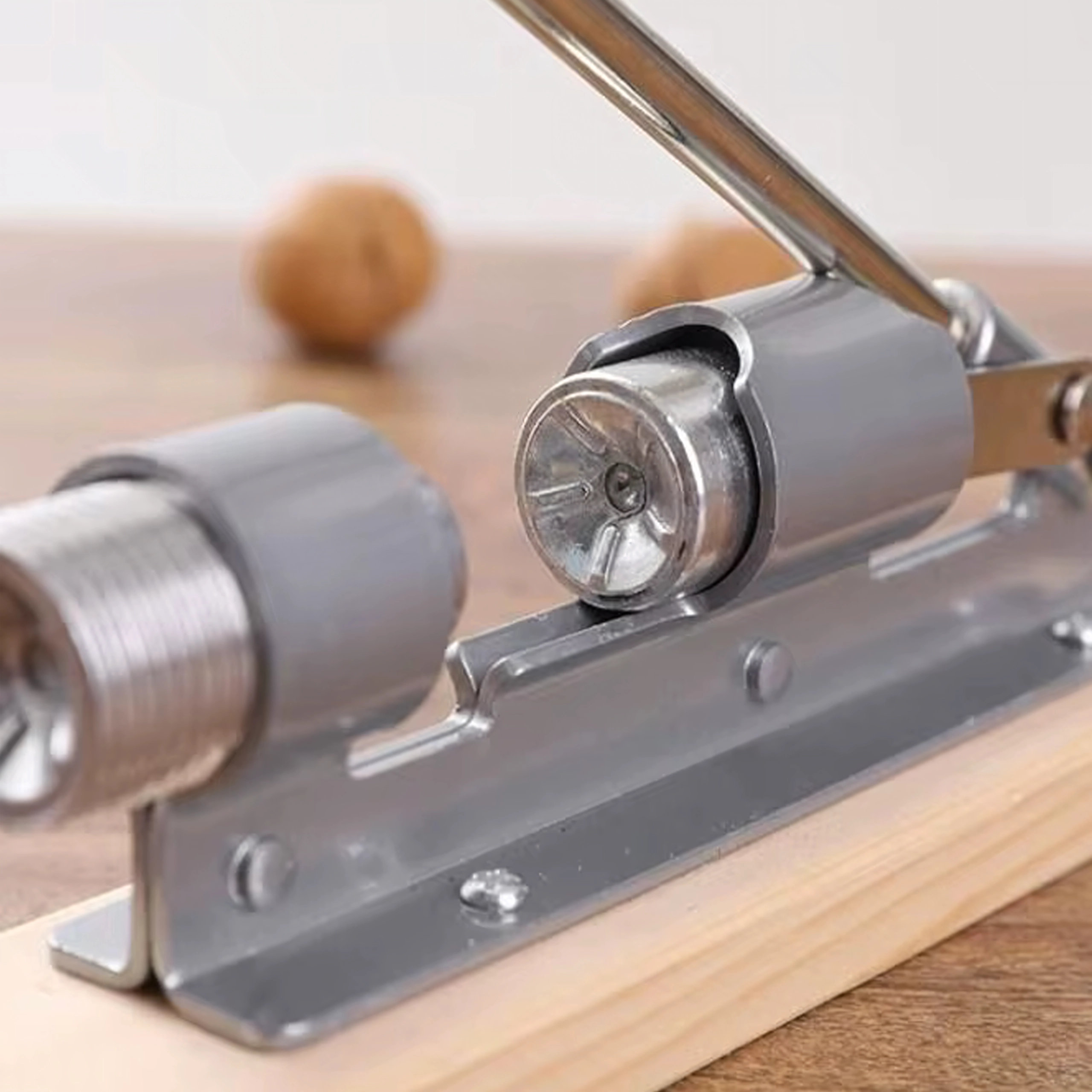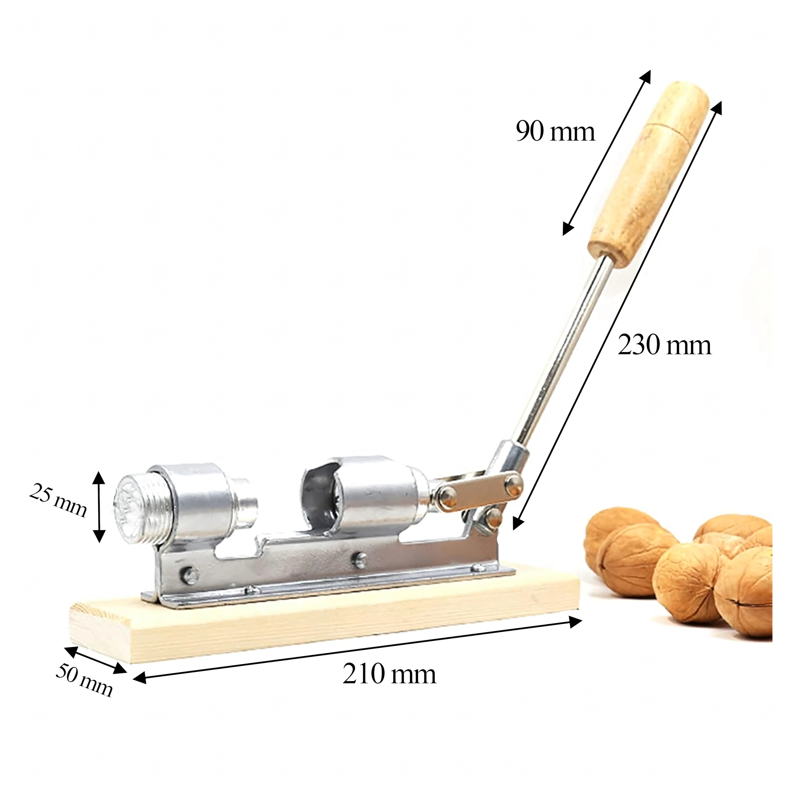Robustný ručný luskáčik na orechy s oceľovým mechanizmom a stabilnou drevenou základňou pre bezpečné a presné lúskanie. Dlhé pákové rameno s drevenou rukoväťou zabezpečuje vysokú silu a pohodlné ovládanie. Vhodné na vlašské, lieskové, mandle, pistácie, makadamové orechy aj morské plody.
