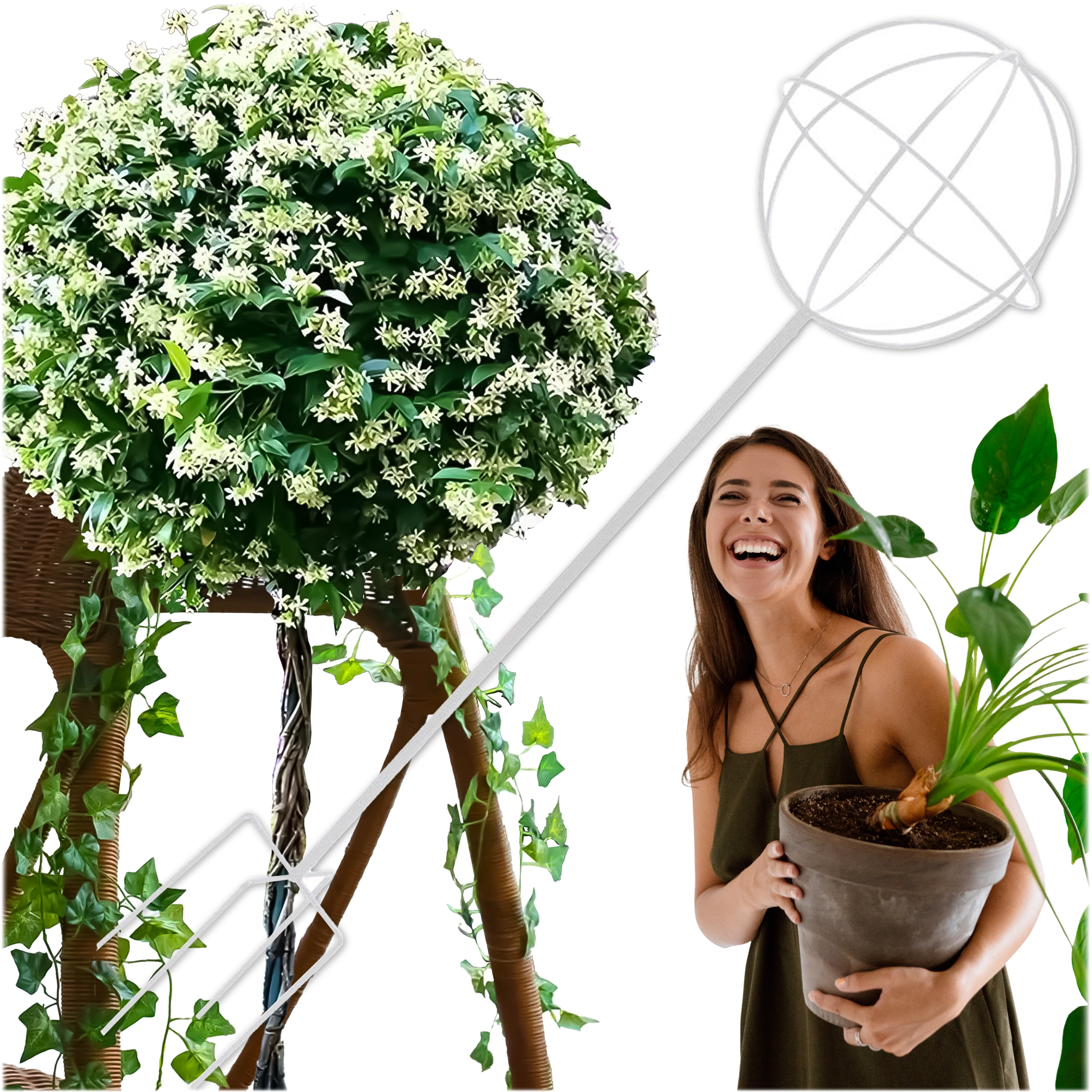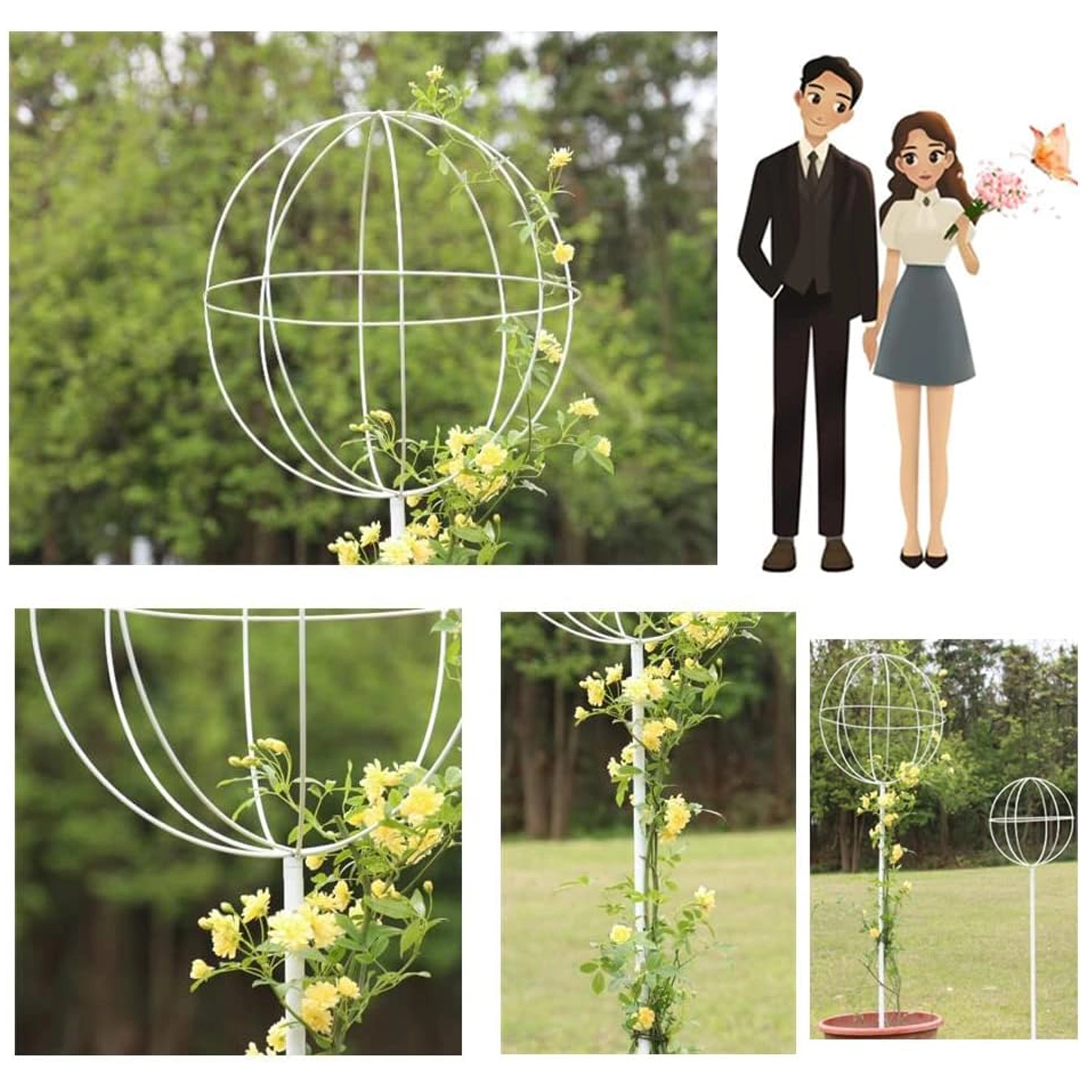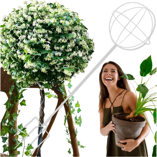 Táto dizajnovo čistá kovová opora v tvare gule na tyči je ideálna na pestovanie popínavých rastlín, ruží a kvitnúcich lian. Vďaka bielemu povrchu vynikne medzi zeleňou a kvetmi, zároveň však nenaruší prirodzený vzhľad výsadby. Ľahko sa zapichne do pôdy a okamžite ponúkne rastlinám oporu pri raste.
