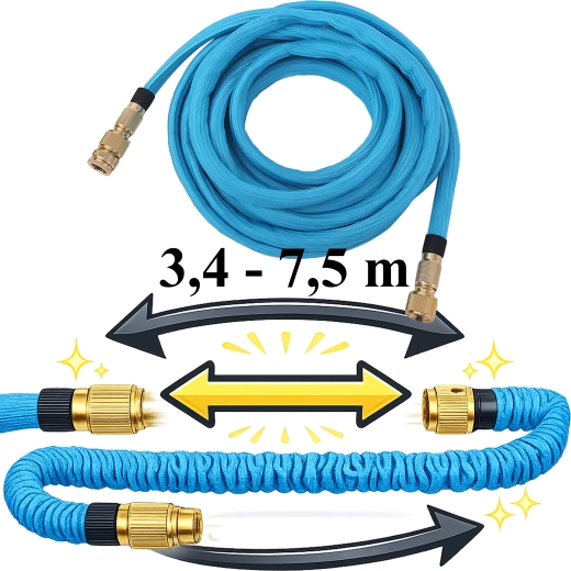 Hadica sa pri prietoku vody predĺži až na 7,5 m, po vypnutí sa zmrští pre úsporné skladovanie. Ideálna do záhrady, na terasu aj na umývanie auta.