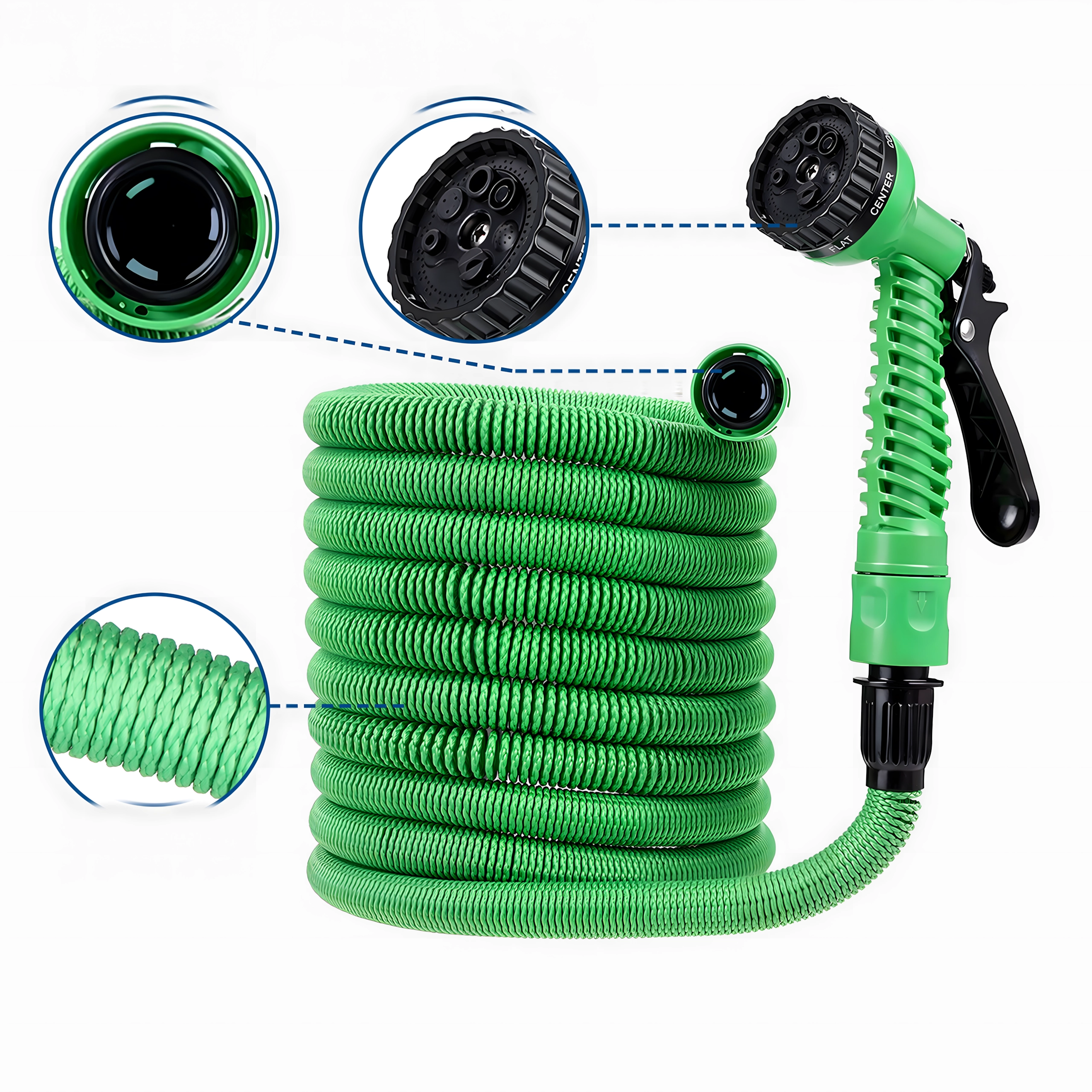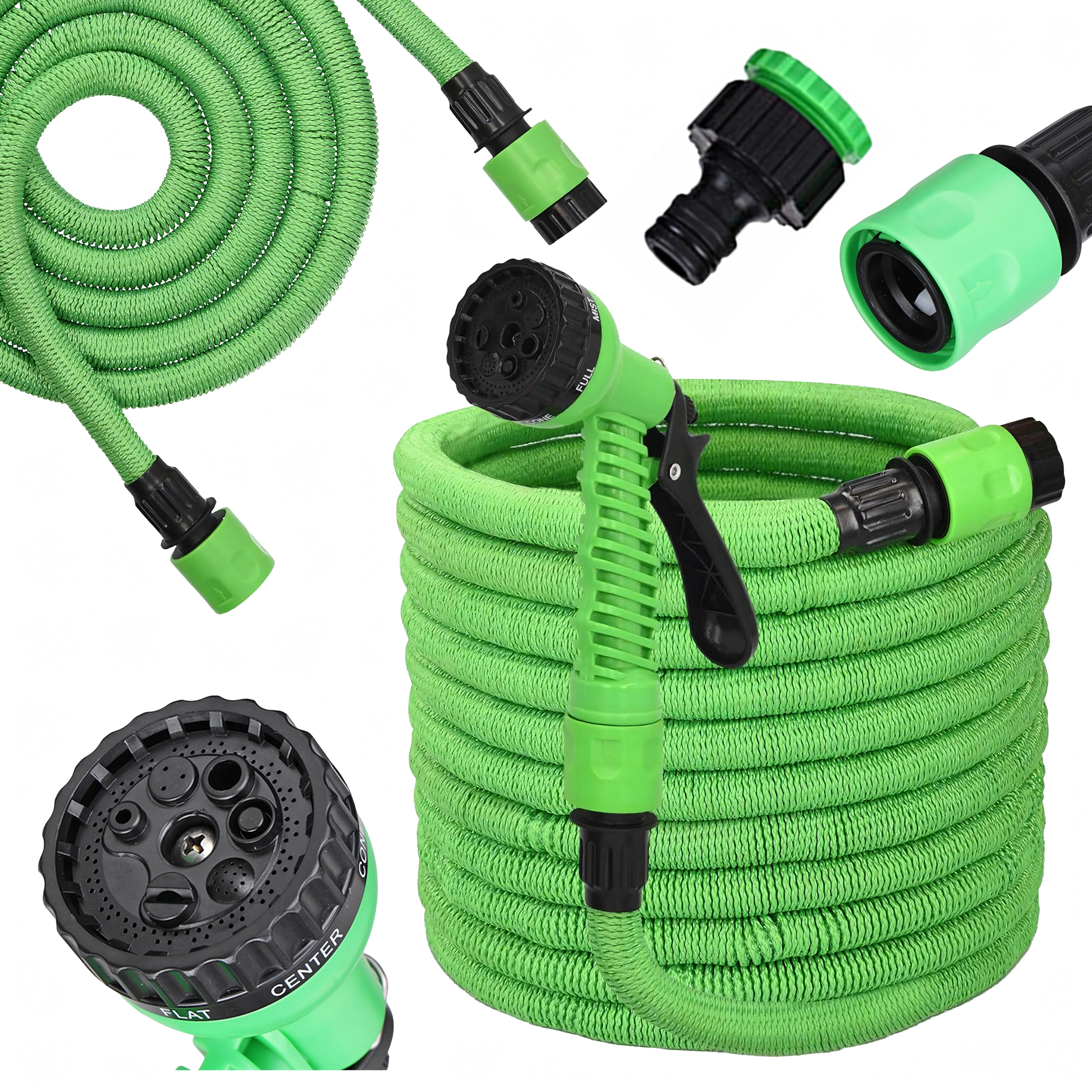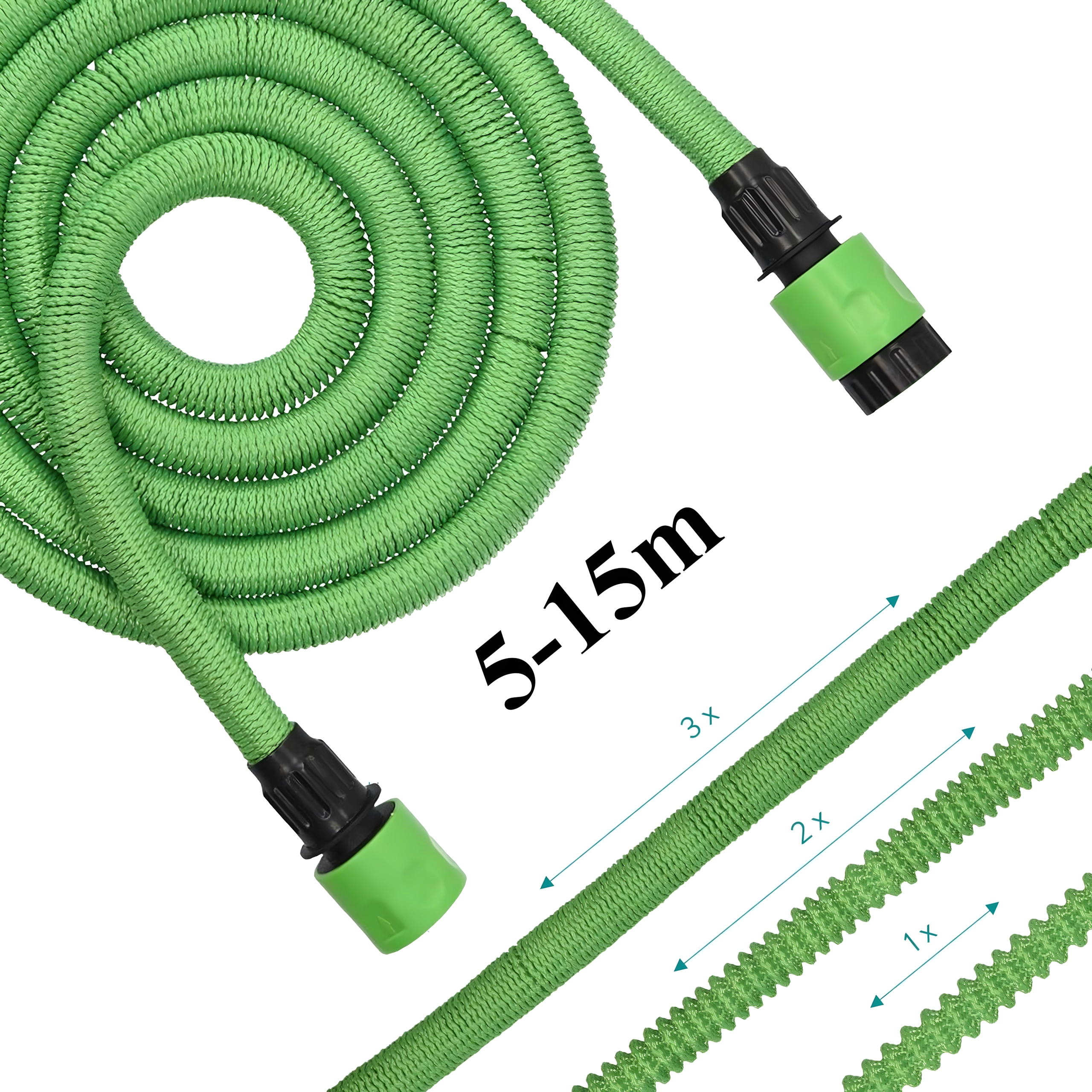 Ľahká a flexibilná záhradná hadica, ktorá sa pri napustení vody predĺži z 5 až na 15 metrov. Súčasťou je univerzálna postrekovacia pištoľ s viacerými režimami a rýchlospojky na jednoduché pripojenie. Ideálna na polievanie záhrady, umývanie auta aj upratovanie okolo domu. Rozťahovacia konštrukcia, odolný textilný plášť a multifunkčná tryska zabezpečia pohodlné a bezpečné používanie bez zalamovania.