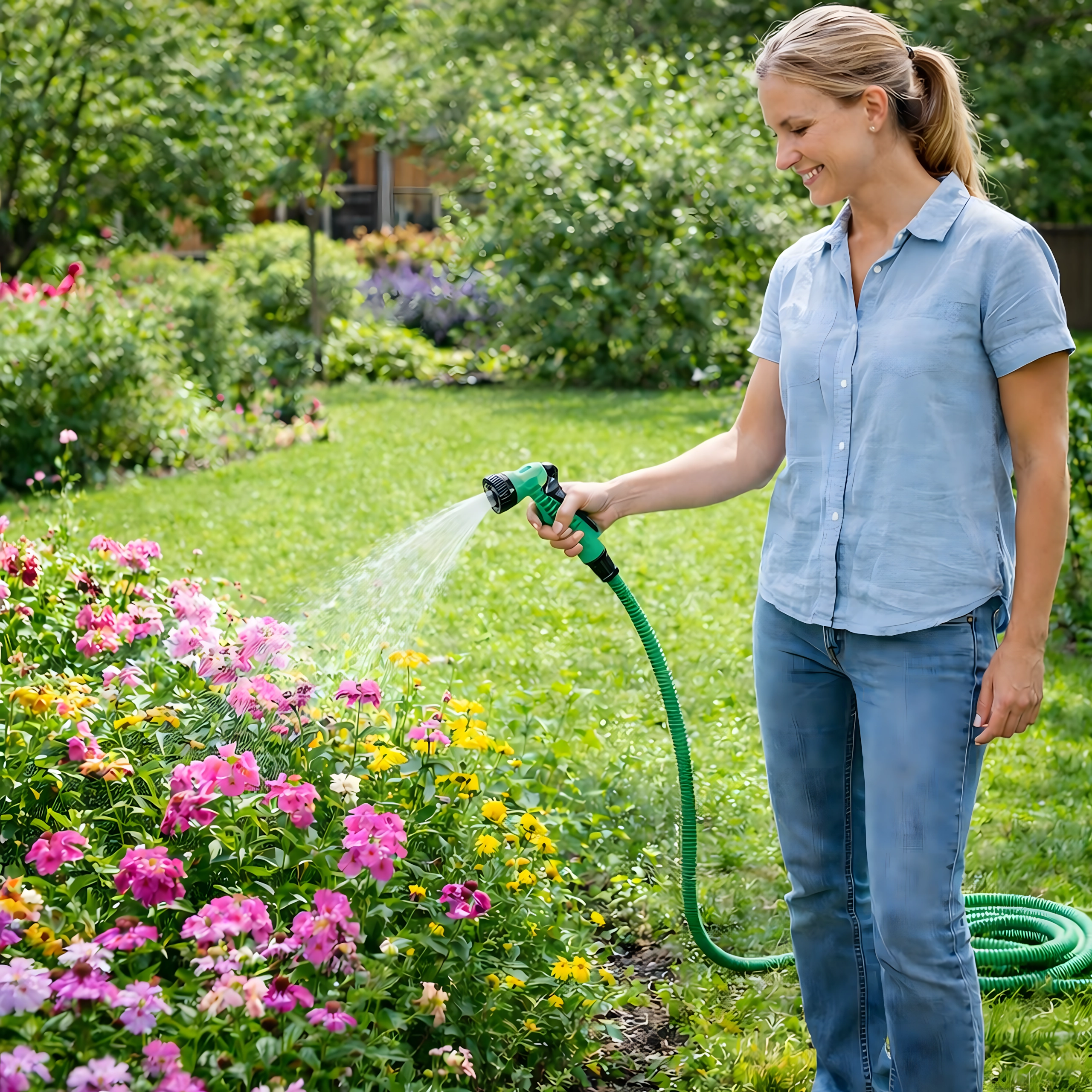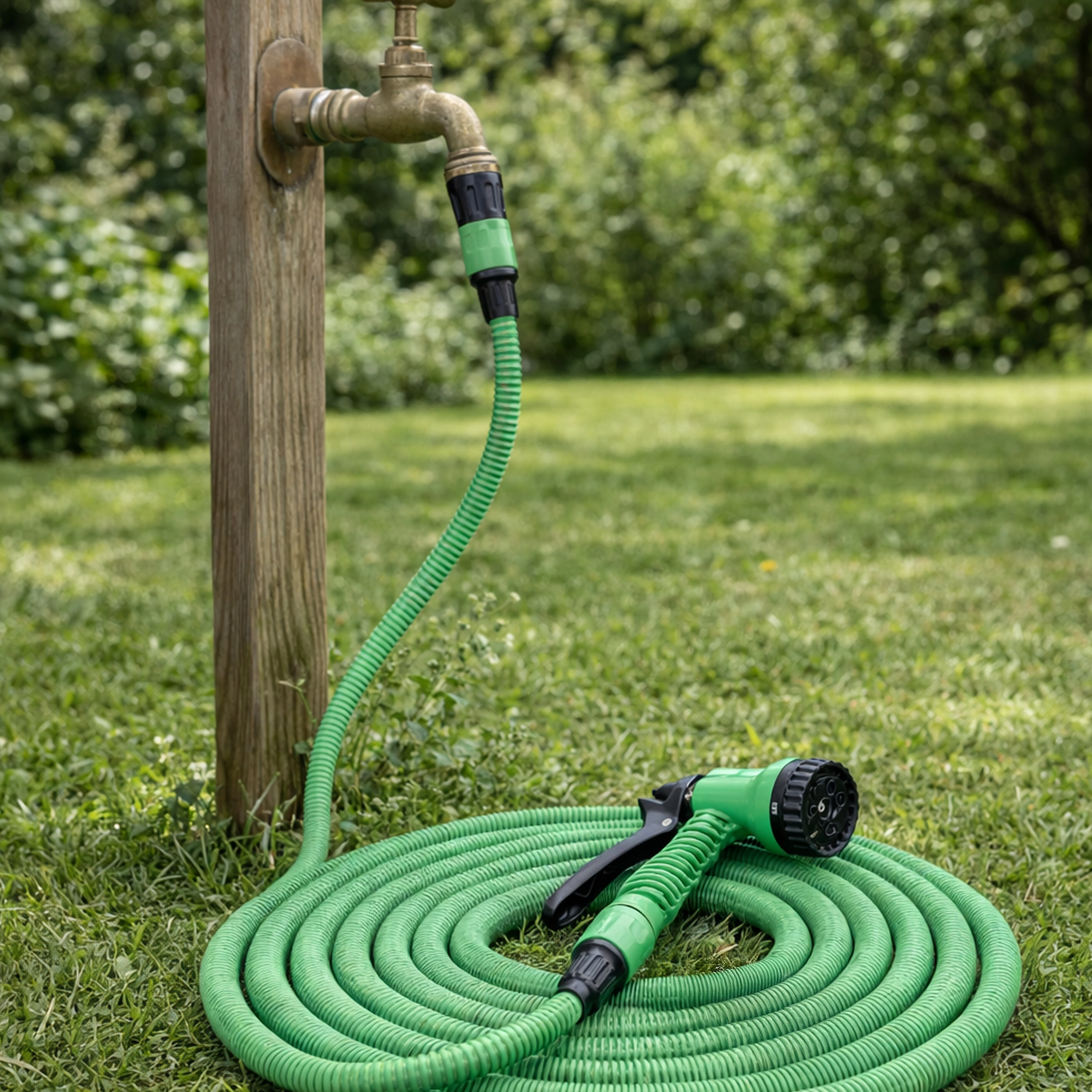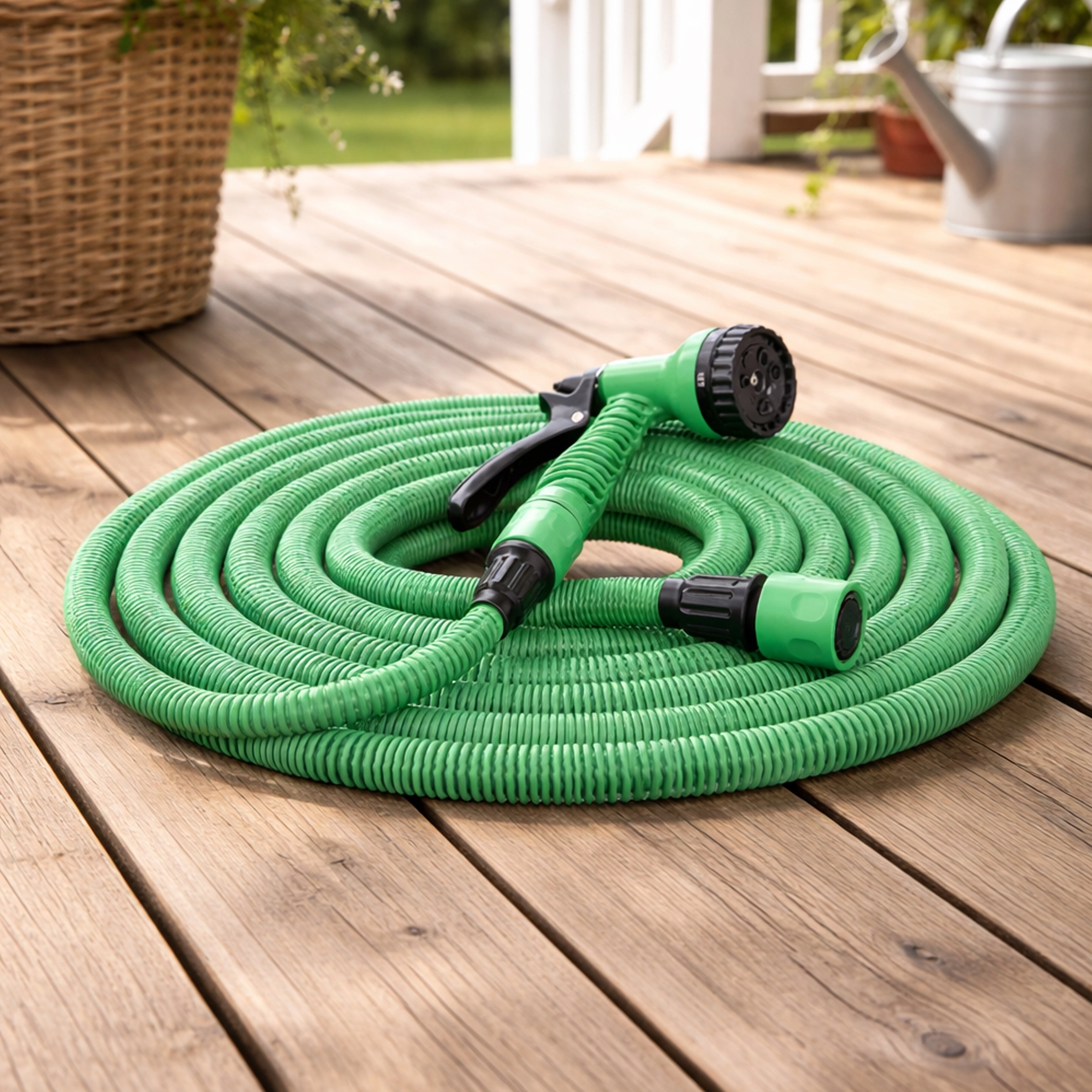 Ľahká a flexibilná záhradná hadica, ktorá sa pri napustení vody predĺži z 5 až na 15 metrov. Súčasťou je univerzálna postrekovacia pištoľ s viacerými režimami a rýchlospojky na jednoduché pripojenie. Ideálna na polievanie záhrady, umývanie auta aj upratovanie okolo domu. Rozťahovacia konštrukcia, odolný textilný plášť a multifunkčná tryska zabezpečia pohodlné a bezpečné používanie bez zalamovania.