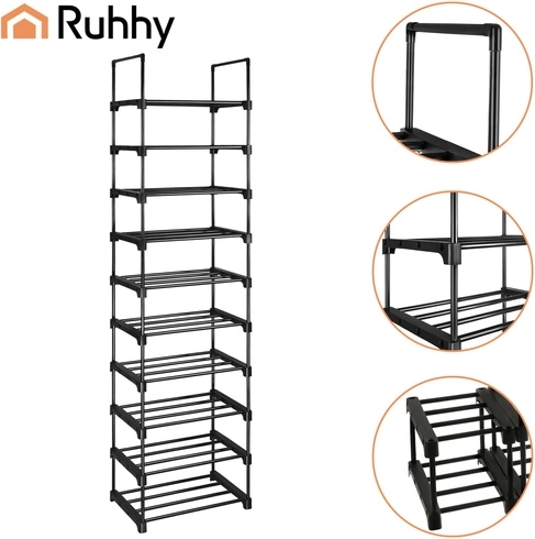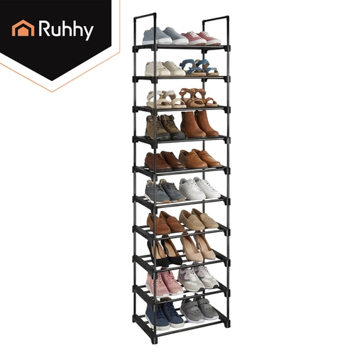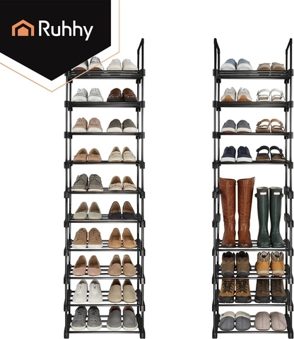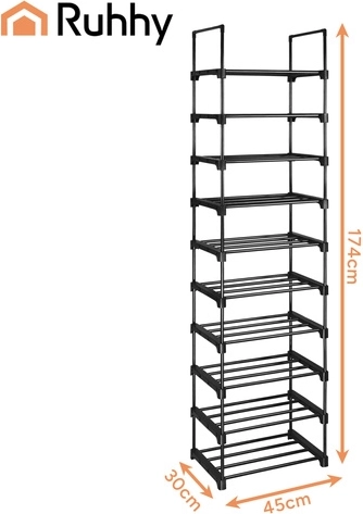 Udržte si poriadok v obuvi bez kompromisov. Vysoký botník RUHHY s 10 úrovňami efektívne organizuje až 20 párov topánok, od tenisiek po lodičky. Úzka silueta šetrí podlahovú plochu, zatiaľ čo pevný kovový rám zaisťuje stabilitu a dlhú životnosť. Otvorená konštrukcia podporuje vetranie a rýchlejšie vysychanie obuvi.