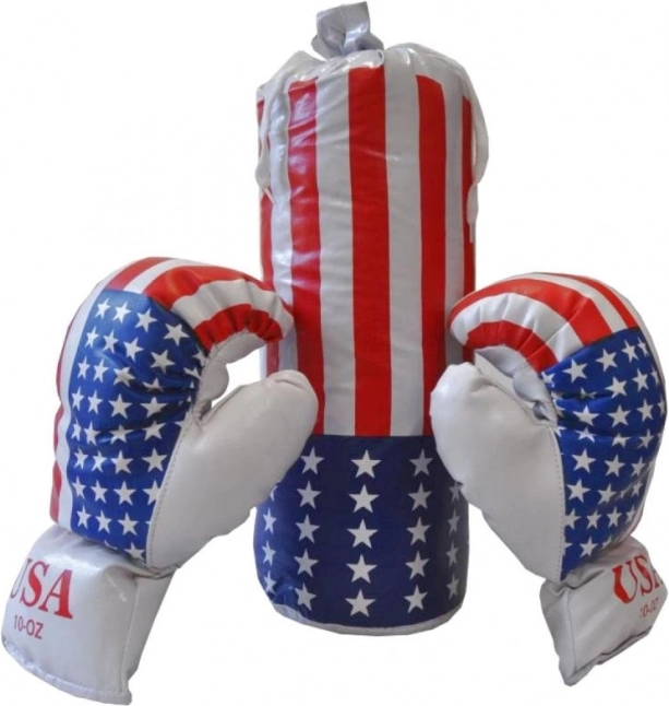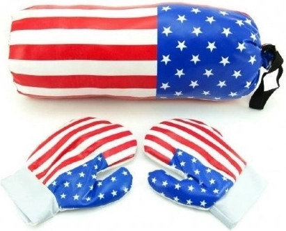 Rukavice majú veľkosť, ktorá je vhodná pre malé detské ruky. Vrecko a rukavice s motívmi americkej vlajky zabavia každého malého bojovníka. Hračka je vyrobená z mäkkého materiálu, takže sa nemusíte obávať prípadného zranenia. Rozvíja kondíciu a predstavivosť dieťaťa a podporuje zdravý pohyb.