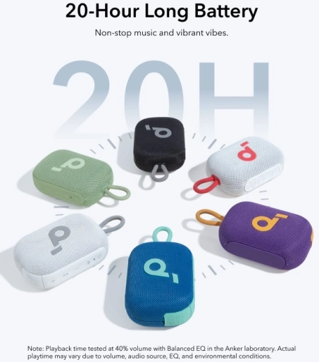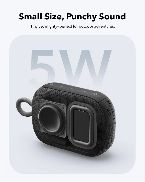 Soundcore Select 4 Go je ideálny spoločník na cesty, výlety aj domáci posluch. Kompaktné telo ukrýva čistý a dynamický zvuk s výkonom 5 W, ktorý prekvapí svojou hutnosťou vzhľadom na veľkosť. Vďaka až 20 hodinám výdrže si vychutnáte hudbu po celý deň bez nutnosti nabíjania.