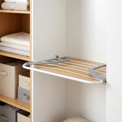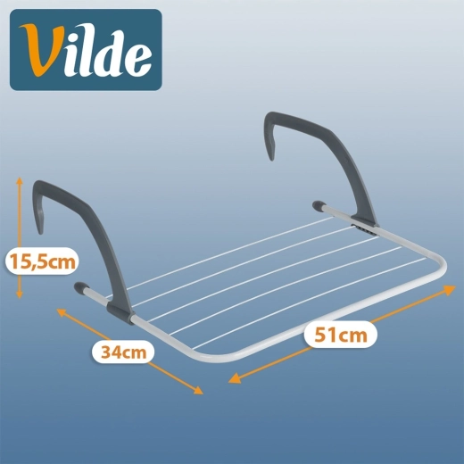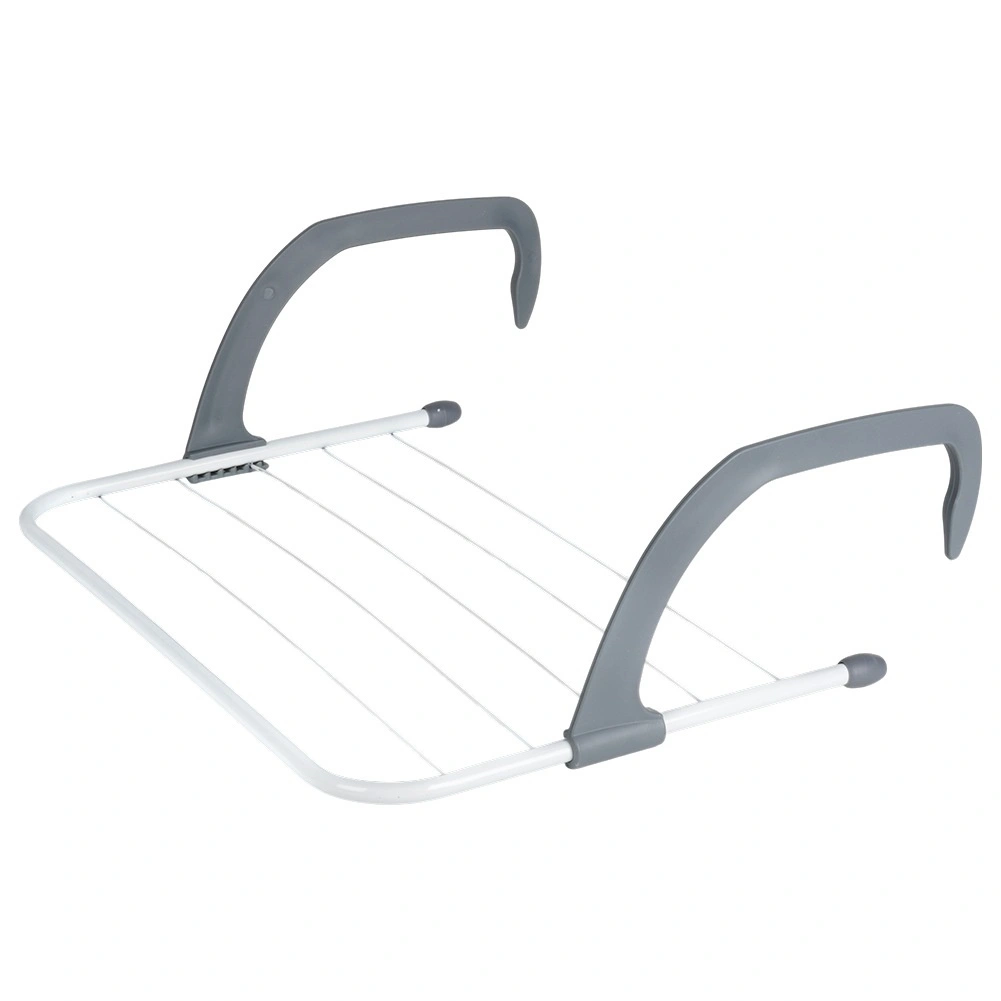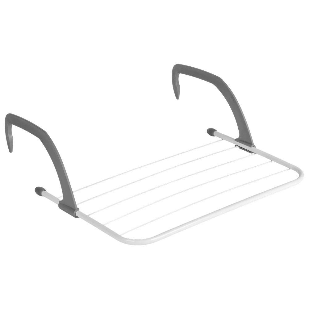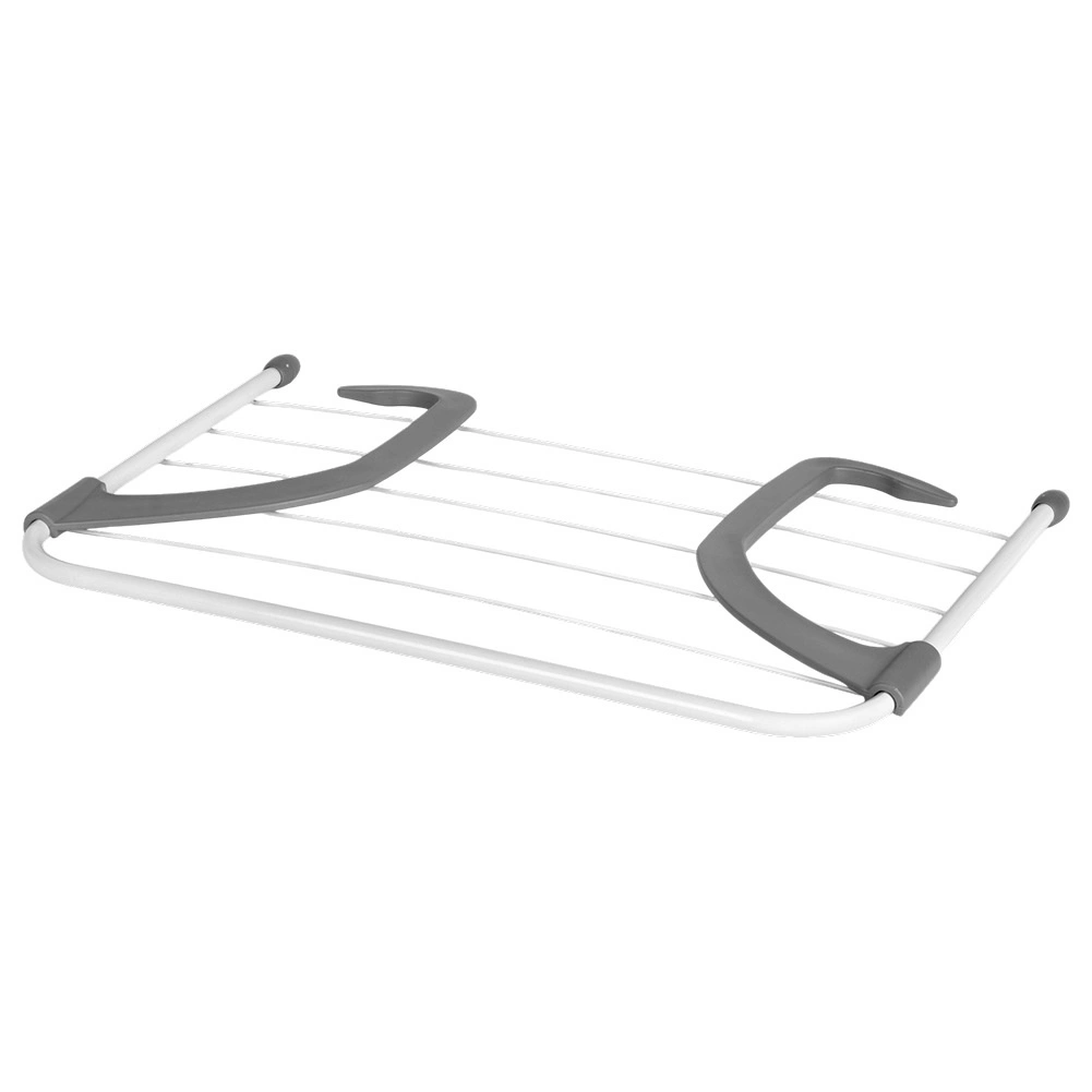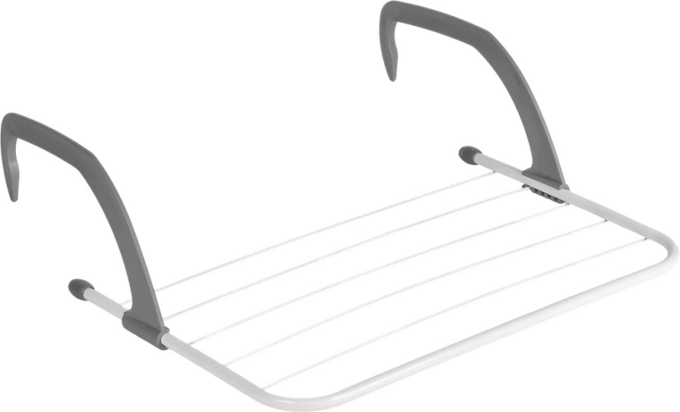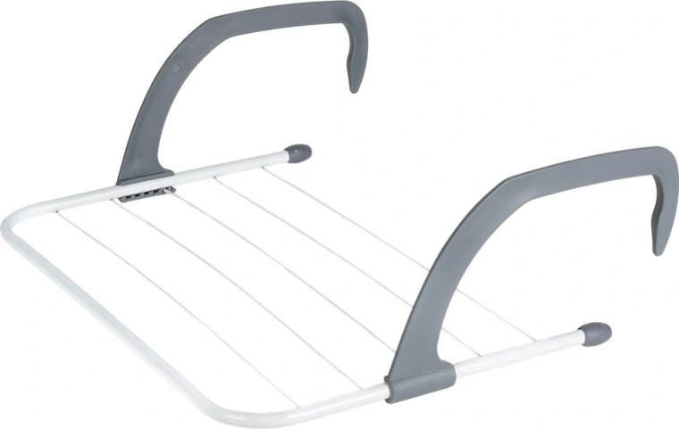 Kompaktný závesný sušiak na radiátor šetrí miesto a urýchli schnutie bielizne teplom z kúrenia. Má rozmery 51 × 34 × 15,5 cm, je z odolného kovu v bielej farbe so sivými hákmi a ponúka 6 tyčí s celkovou sušiacou plochou 282 cm a nosnosťou až 6 kg. Sklápacie a nastaviteľné ramená umožnia zavesenie na radiátor, zábradlie či balkón bez vŕtania.