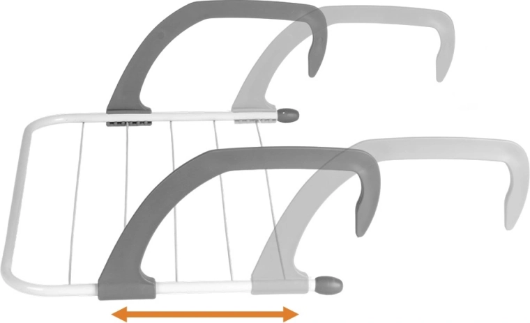 Sušiak ponúka 6 paralelných tyčí (každá s dĺžkou cca 47 cm), takže pohodlne vysušíte spodnú bielizeň, tričká alebo uteráky. Nastaviteľné ramená umožnia zvoliť vzdialenosť od vykurovacieho telesa pre rýchlejšie schnutie a lepšiu cirkuláciu vzduchu.