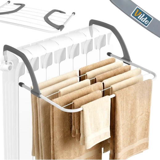 Praktický sušiak na každodenné použitie, ktorý ľahko zavesíte na väčšinu doskových radiátorov aj zábradlí do šírky cca 13 cm. Ľahká konštrukcia z lakovaného kovu je pevná a odolná, pritom sa po zložení zmestí do skrinky či pod posteľ. Ideálny do malých bytov, kúpeľní aj na balkón.