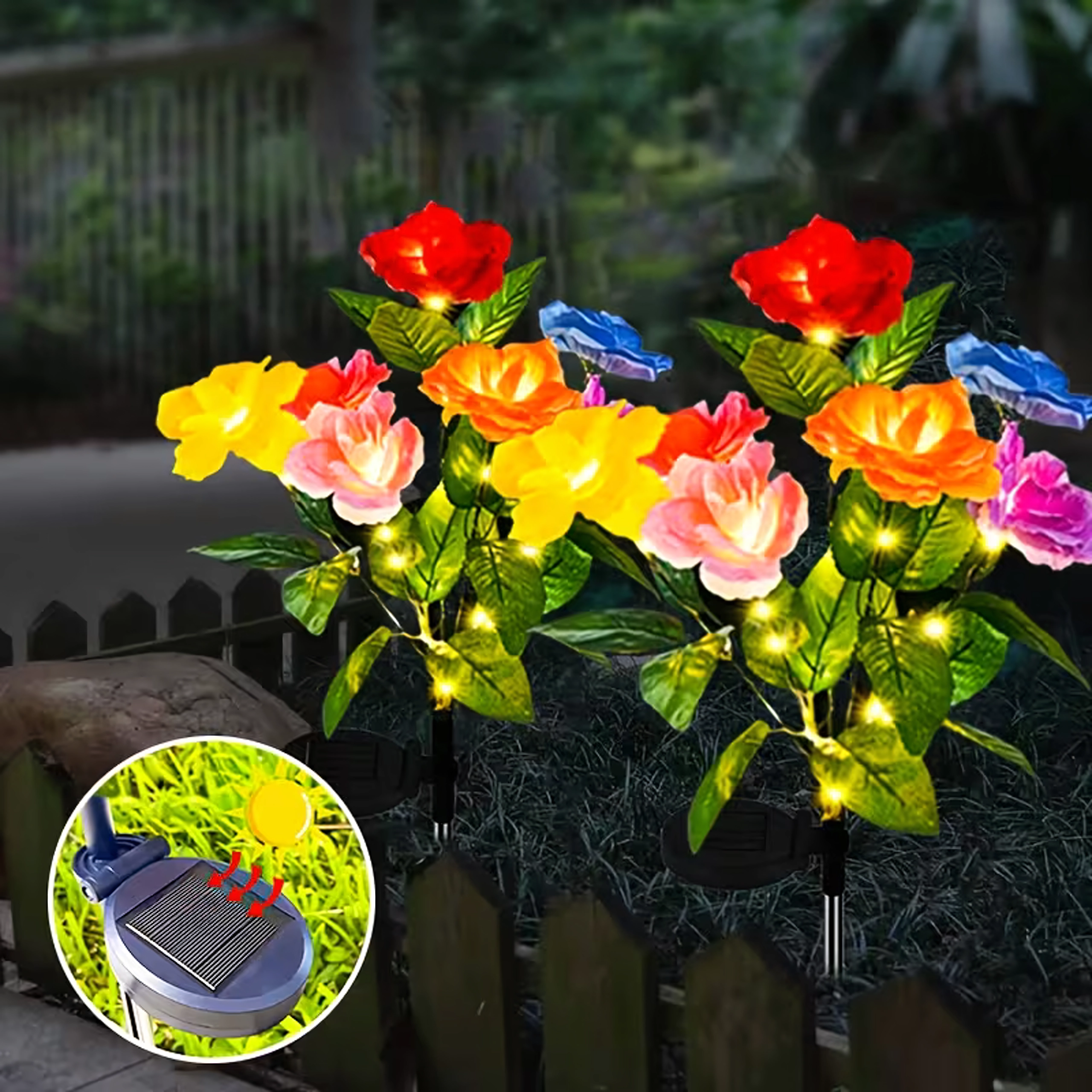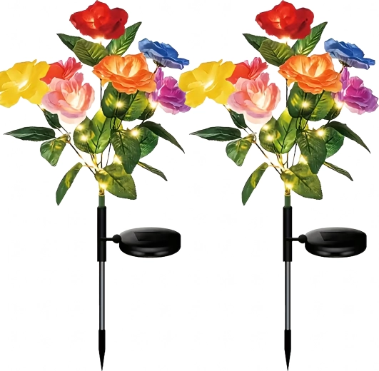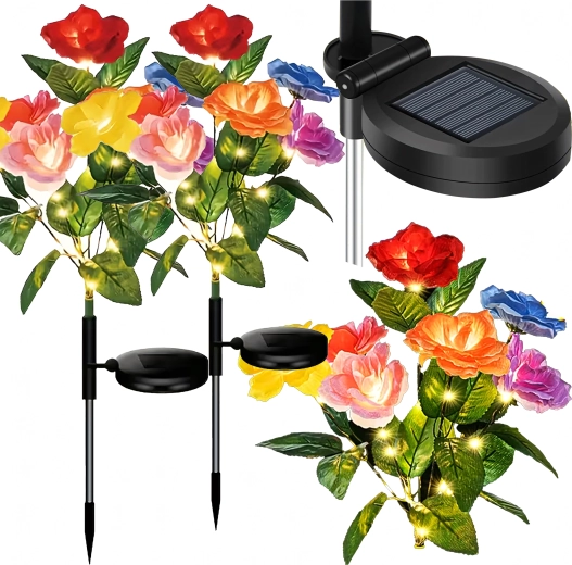 Ozdobte záhradu čarovným svetlom s touto sadou 2 solárnych záhradných svetiel v tvare ruží. Farebné kvety s teplými LED sa po zotmení automaticky rozsvietia, vytvoria príjemnú atmosféru a zároveň nevyžadujú káble ani batérie. Odolné voči poveternosti, ideálne na osvetlenie chodníkov, záhonov aj terás.