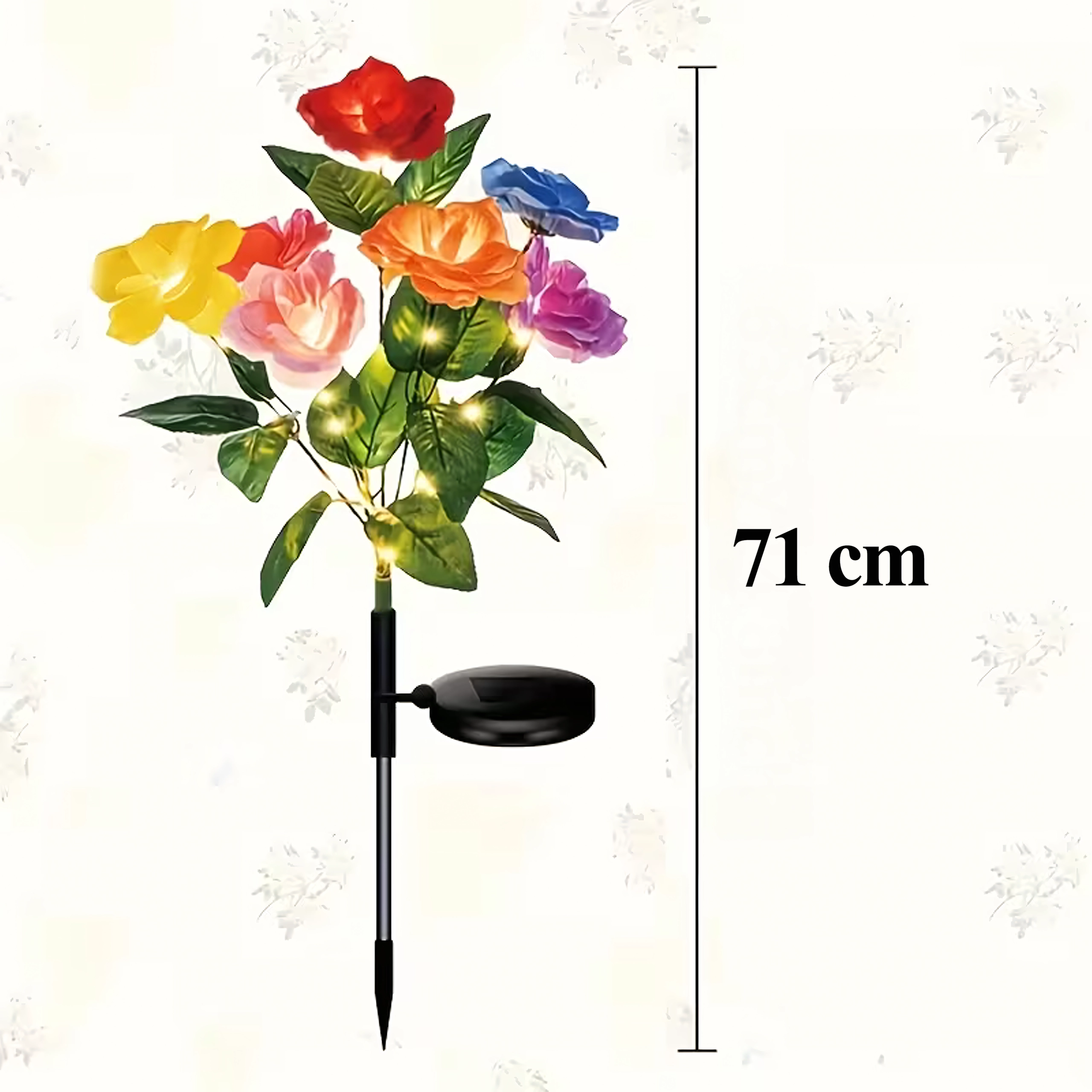 Tieto dekoratívne solárne svetlá prinášajú do exteriéru farby aj jemné večerné osvetlenie. Realistické ružové kvety v niekoľkých odtieňoch sú poprepletané jemnými mikro LED, ktoré po nabití na slnku automaticky svietia po zotmení. Vďaka solárnemu napájaniu sú svetlá úsporné a bezúdržbové – stačí ich zapichnúť do zeme.