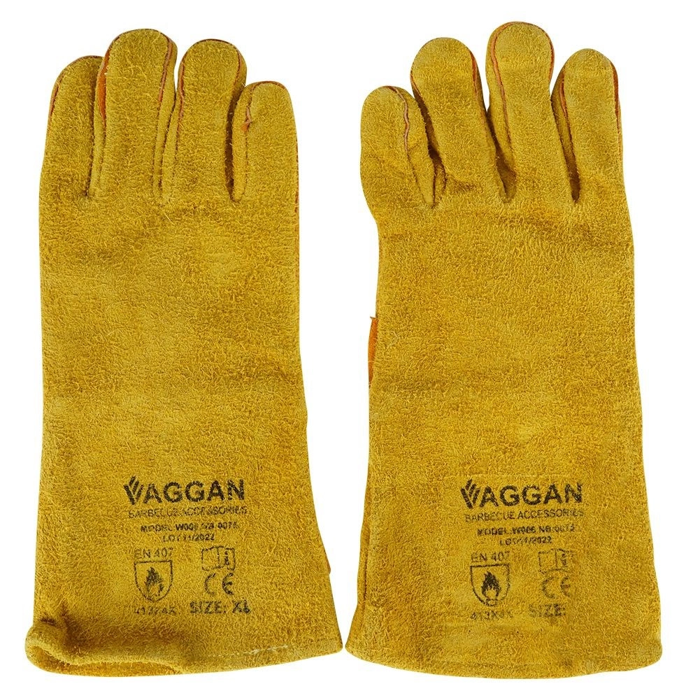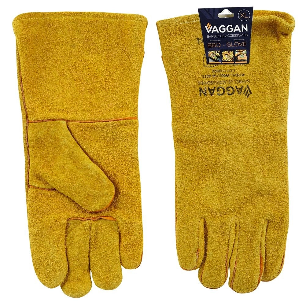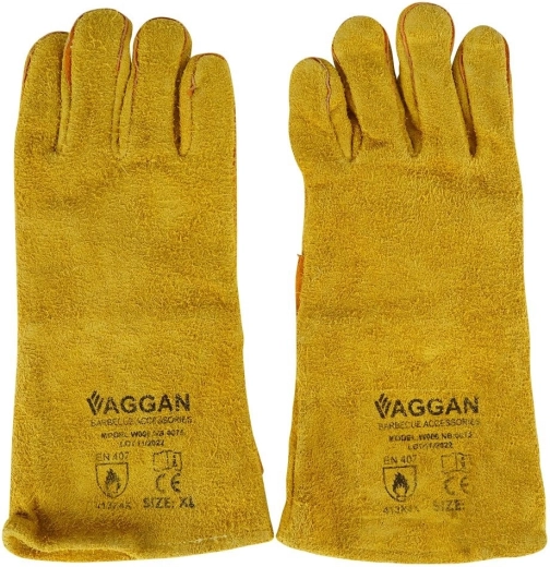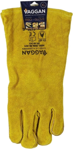 Pár kvalitných kožených rukavíc na grilovanie s dĺžkou 34 cm a veľkosťou XL spoľahlivo ochráni ruky aj predlaktia pred žiarom. Vďaka vnútornej flísovej podšívke sú pohodlné, z mäkkej kože v horčicovom odtieni zároveň odolné voči vysokým teplotám. Spĺňajú normu EN 407 a triedu BC, takže sa hodia ku grilu, rúre aj sporáku.