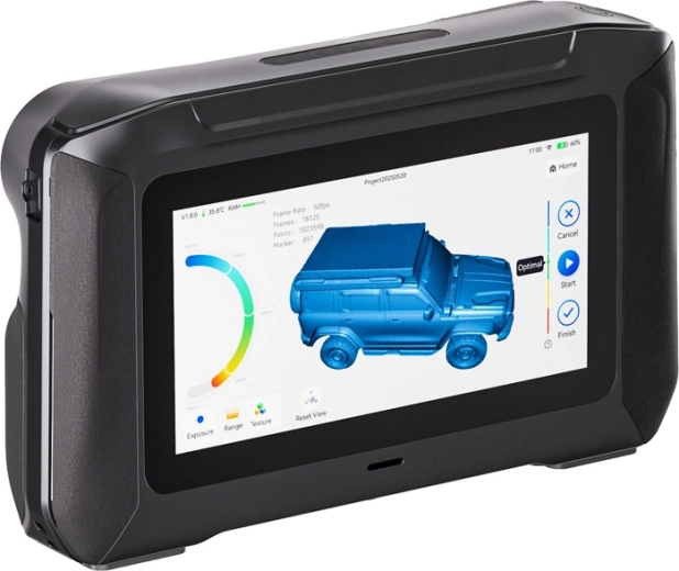 Široké možnosti použitia – od 5 × 5 × 5 mm až po 4000 × 4000 × 4000 mm. Skener si poradí s hlbokými otvormi (pomer až 5:1), skenovaním postáv bez markerov, čiernymi aj kovovými povrchmi a náročnými svetelnými podmienkami. Dáta ľahko vyexportujete do QuickSurface, Geomagic Design X, Siemens NX, CATIA, Creo, SolidWorks, Maya, 3ds Max, Rhino, Cinema4D, ZBrush, Meshmixer, Mudbox, MeshLab, Unreal Engine, Fusion 360, Blender.