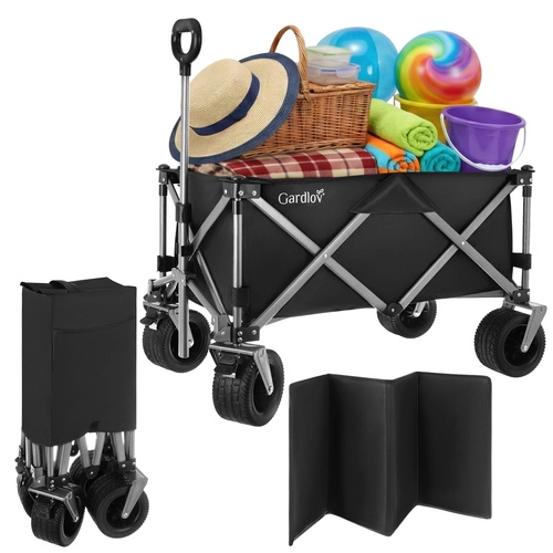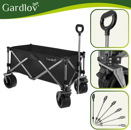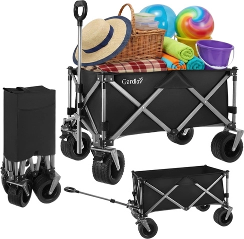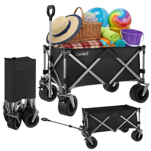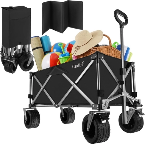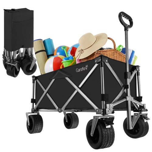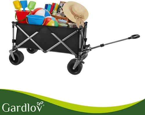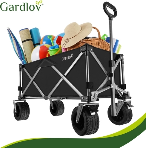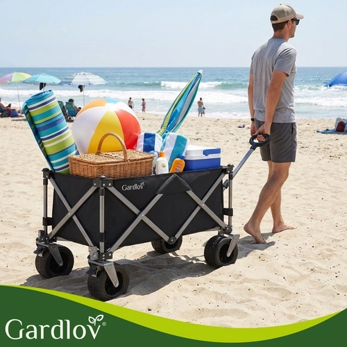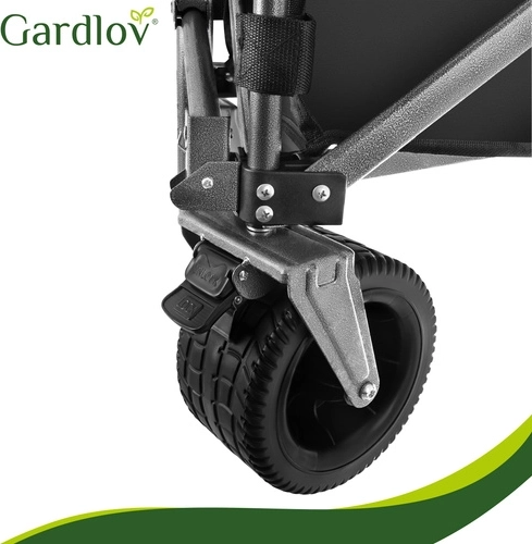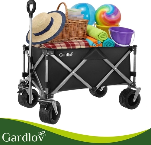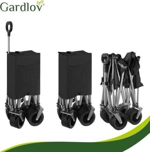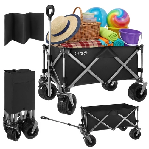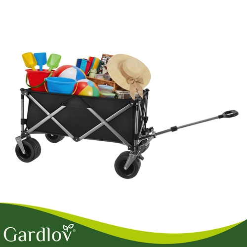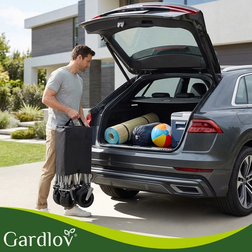 Univerzálny skladací vozík GARDLOV je ideálny pomocník na záhradu, pláž, kemping aj chatu. Ponúka mimoriadnu nosnosť 200 kg, veľký objem 150 l a odolnú vodeodolnú tkaninu Oxford 600D s PVC povlakom. Vďaka širokým terénnym kolesám, otočným predným kolesám 360° a teleskopickej rukoväti ľahko prevezie ťažký aj neskladný náklad a po práci sa rýchlo zloží do kompaktných rozmerov.