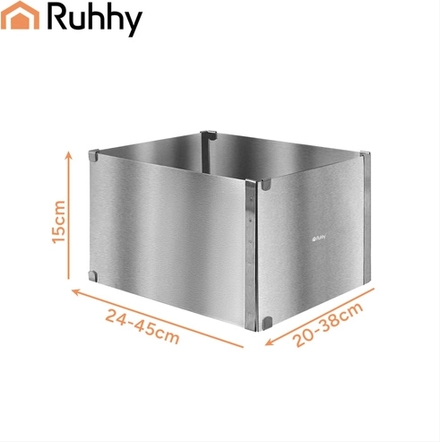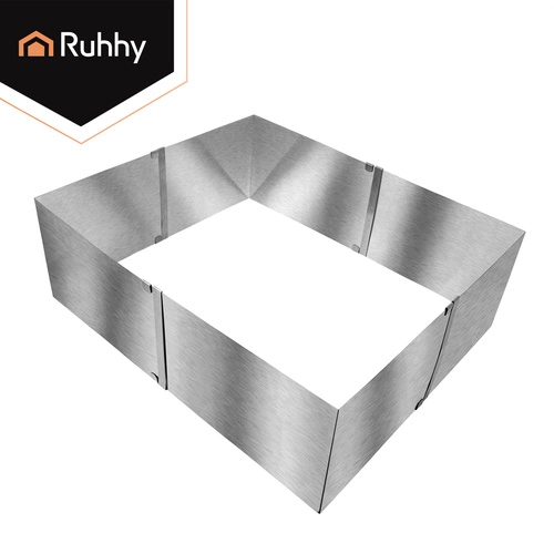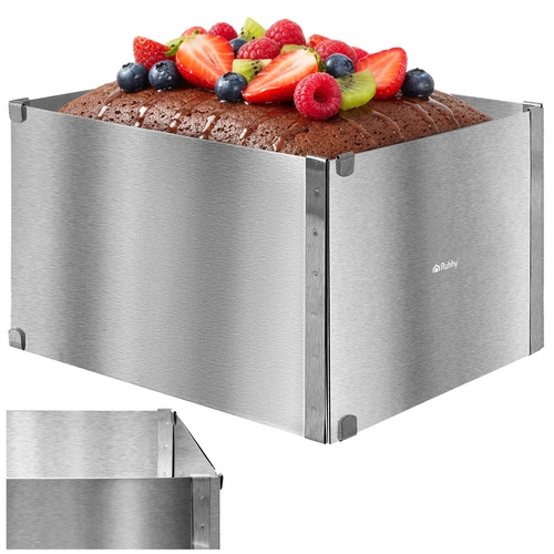 Praktická nastaviteľná forma RUHHY z nehrdzavejúcej ocele na pečenie aj vrstvenie dezertov. Vďaka plynulej regulácii rozmerov 20–38 × 24–45 cm a výške 15 cm ľahko prispôsobíte veľkosť každému receptu. Pevné spony držia nastavenie, kvalitná nehrdzavejúca oceľ je odolná a vhodná na bezpečný kontakt s potravinami a jednoduchá údržba vrátane umývania v umývačke šetrí čas.