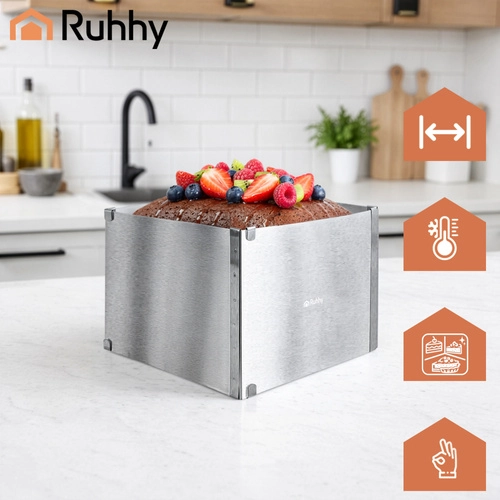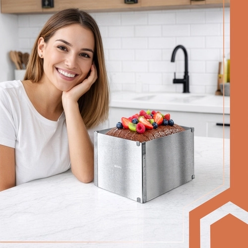 Vďaka rozsahu 20–38 × 24–45 cm a výške 15 cm zvládnete nízke rezy aj vysoké viacposchodové torty. Stabilné spony udržia zvolený rozmer aj pri maximálnom roztiahnutí a tesná konštrukcia minimalizuje vytekanie náplní pri pečení aj chladení.