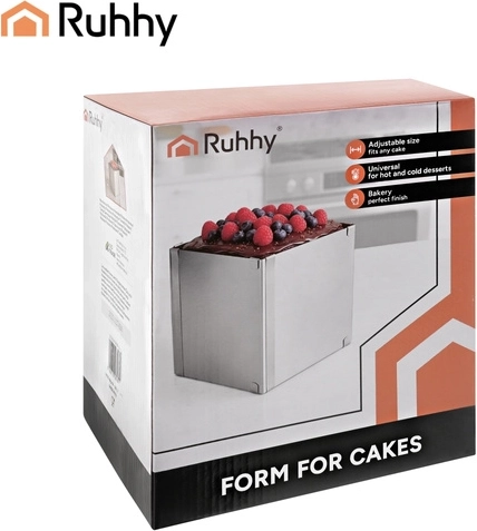 Nastaviteľný obdĺžnikový rám RUHHY je univerzálny pomocník pre domácich aj profesionálnych cukrárov. Umožní vám presne tvarovať korpusy, torty, piškóty či nepečené a vrstvené dezerty s dokonale rovnými hranami. Robustná nehrdzavejúca oceľ odoláva korózii aj deformáciám a ľahko sa čistí.