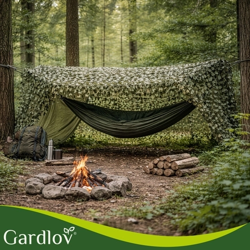 Maskovacia sieť GARDLOV 2 × 5 m v lesnom vzore Woodland sa ľahko prispôsobí plotom, pergolám aj dočasným prístreškom. Vďaka odolnej textílii s listovými výrezmi spoľahlivo rozbije obrysy a prirodzene splynie s okolitou vegetáciou. Ľahká konštrukcia uľahčuje prenášanie, napínanie aj demontáž.