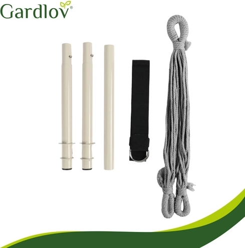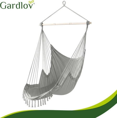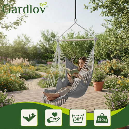 Závesné kreslo GARDLOV premení každý kút na útulnú zónu oddychu. Pevná bavlnená tkanina s prímesou polyesteru príjemne objíme telo, drevená rozpieracia tyč a viacbodové zavesenie sa postarajú o stabilitu a pohodlné sedenie aj pololeh. Vďaka nízkej hmotnosti 2,6 kg ho ľahko prenesiete medzi interiérom a exteriérom.