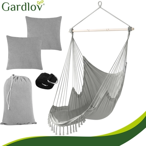 Užite si pokojný relax doma aj vonku so štýlovým závesným hojdacím kreslom GARDLOV. Odolná látka, stabilizačná priečka a nosnosť 150 kg zaistia bezpečné a pohodlné hojdanie. V balení nájdete 2 mäkké vankúše, závesný popruh a praktické puzdro na jednoduché prenášanie. Ideálne na balkón, terasu, záhradu aj do obývačky.
