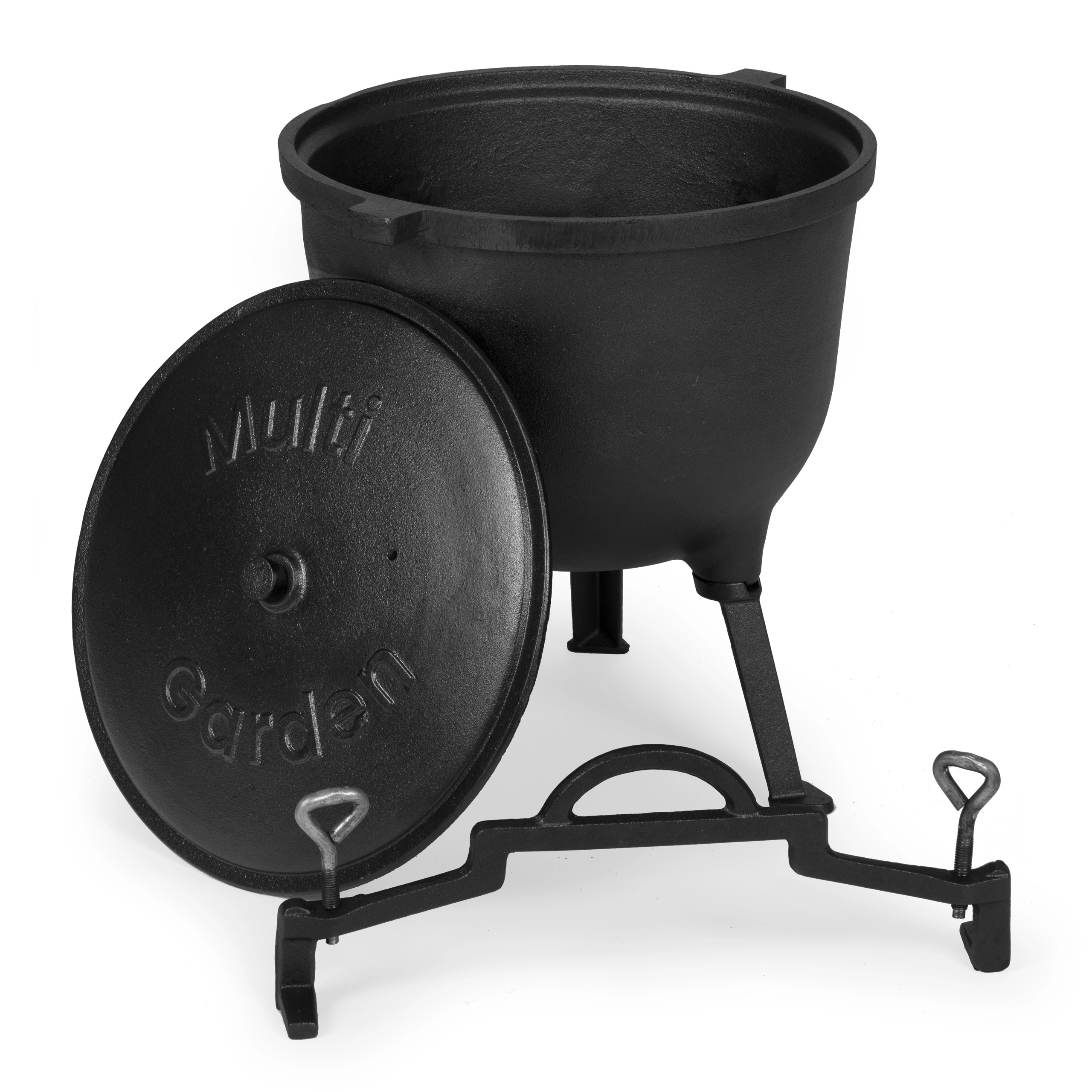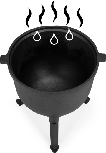 Pevný liatinový kotlík so stojanom a vekom je ako stvorený na vonkajšie varenie. Dymovodný otvor vo veku pomáha regulovať paru a kontrolovať proces.