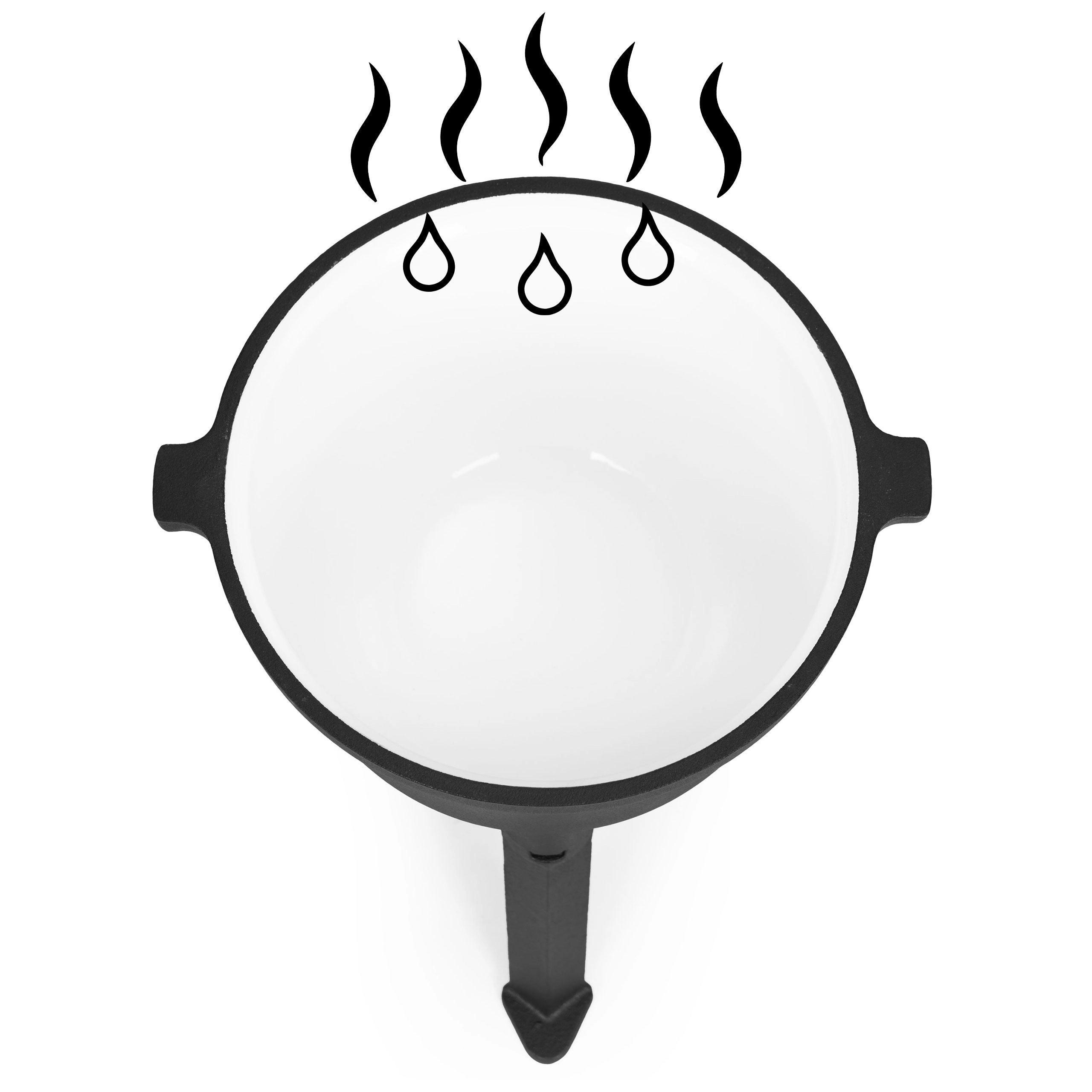 Kotlík stojí na stabilných odnímateľných nožičkách, takže ho môžete používať priamo nad ohniskom. Po zložení nožičiek je vhodný aj na plynový sporák. Veko s ventiláciou uľahčuje kontrolu priebehu varenia a integrované madlo zabezpečuje bezpečné prenášanie. Odolná liatina zvláda veľmi vysoké teploty a je pripravená na dlhoročné používanie.