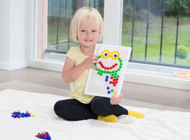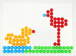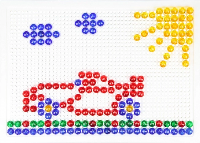 Mozaika LENA so 100 farebnými klobúčikmi je ideálnou voľbou na kreatívne hranie doma aj v škôlke. Vďaka jednoduchému systému vkladania kolíčkov do perforovanej dosky si deti precvičia koordinačné schopnosti a trpezlivosť, zatiaľ čo vytvárajú vlastné motívy – zvieratká, vozidlá či fantastické obrazce.