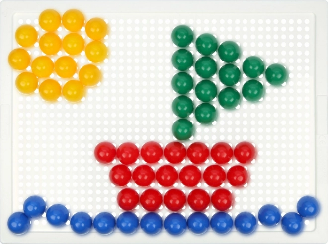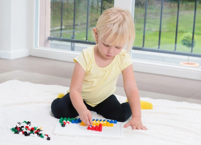 Vkladanie kolíčkov do mriežky trénuje úchop, koordináciu oko–ruka a trpezlivosť. Ideálna aktivita pre predškolákov.
