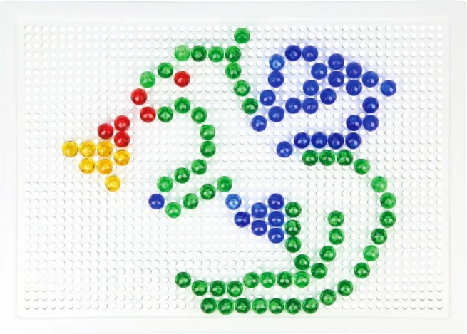 Obsahuje plastovú mriežku 21 × 16 cm a 100 kolíčkov s priemerom 10 mm v pestrých farbách. Set je balený v kartónovom obale a je vhodný pre deti od 3 rokov. Predlohy nie sú súčasťou – priestor pre fantáziu je tak neobmedzený.