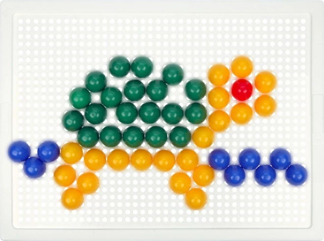 Kolíčky s priemerom 10 mm v živých farbách skvele držia v pevnej plastovej podložke 21 × 16 cm pre pohodlné tvorenie.