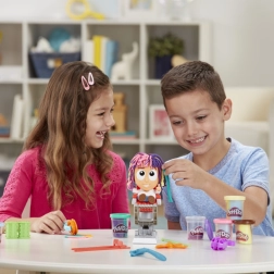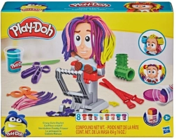 S týmto kaderníckym setom Play-Doh vznikajú bláznivé účesy raz-dva. Usaďte postavičku do kresla, zatlačte a z hlavy vyrastie farebná hriva, ktorú môžete ďalej strihať, česať a zdobiť. Viacfarebná modelovacia hmota a zábavné doplnky robia z každého strihania nový príbeh plný fantázie.