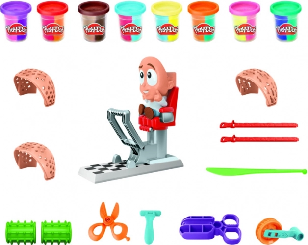 Figúrka s kreslom, lisovacia základňa, nožnice, hrebeň, formičky, kelímky modelovacej hmoty Play-Doh (viac farieb)