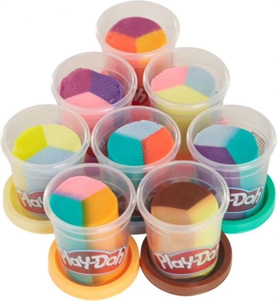 Posaďte figúrku do kresla a zatlačte – z hlavy sa okamžite vytlačí pestrá hriva Play-Doh, pripravená na strihanie a styling.