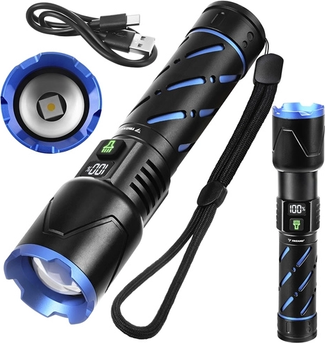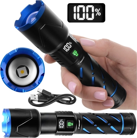 Vďaka akumulátoru 21700 s kapacitou 5000 mAh zvládne baterka až 3–12 hodín prevádzky (podľa režimu). Nabíjanie cez USB‑C je rýchle a pohodlné, k dispozícii je aj USB výstup pre funkciu powerbanky. Digitálny displej na tele baterky zobrazuje aktuálny stav batérie, takže vždy viete, kedy je čas dobiť.