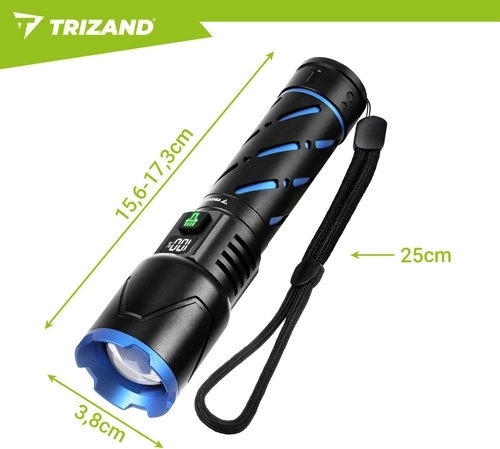 Táto kompaktná taktická LED baterka TRIZAND kombinuje vysoký výkon s dlhou výdržou a odolným spracovaním. 800 lúmenov a dosvit až 200 metrov zaistia istotu pohybu po zotmení, zatiaľ čo zoom umožní prepínať medzi širokým kužeľom a úzkym, zaostreným lúčom.