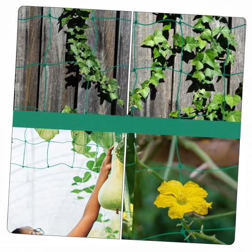 Inštalácia je jednoduchá – sieť možno ľubovoľne skrátiť, prichytiť k oporám či konštrukcii v skleníku a postupne k nej priväzovať výhony. Je ideálna pre uhorky, fazuľu, hrášok, paradajky a okrasné popínavky. Hustá mriežka poskytuje mnoho oporných bodov pre prirodzené ovíjanie stoniek.