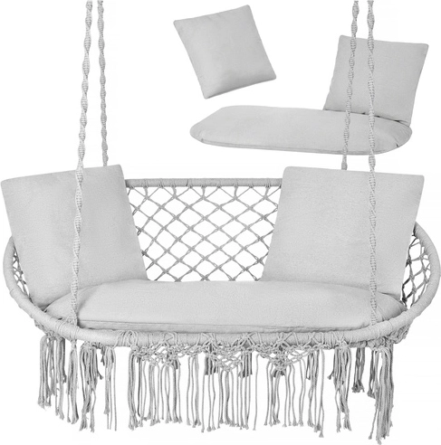 Premeňte svoju závesnú hojdačku na oázu pokoja. Dvojmiestny sedák vyplní priestor sedenia a spolu s dvoma mäkkými vankúšmi poskytne oporu chrbta aj hlavy. Silné a pružné výplne sa prispôsobia telu a ponúknu komfort aj pri dlhšom sedení.