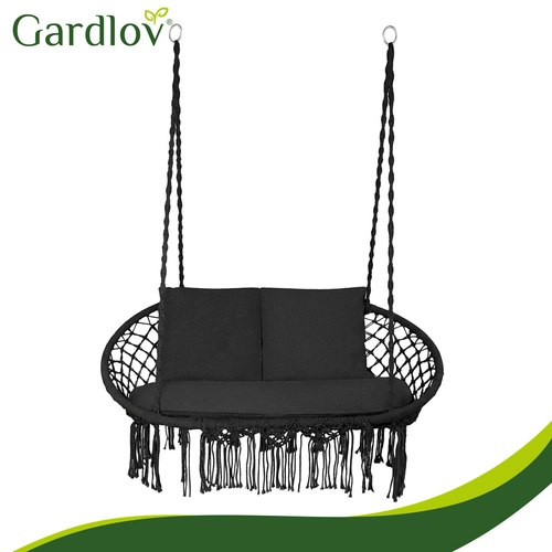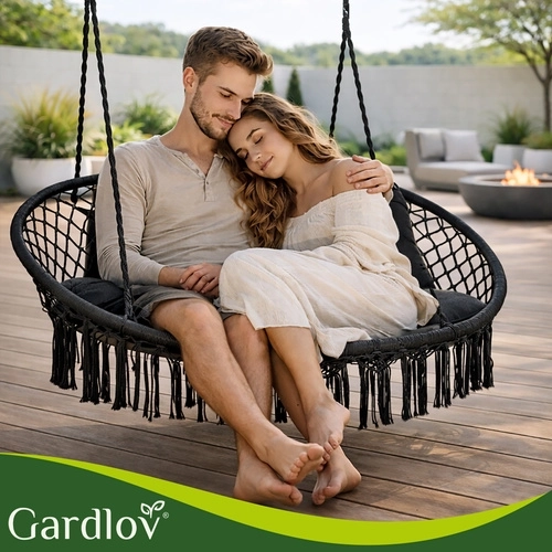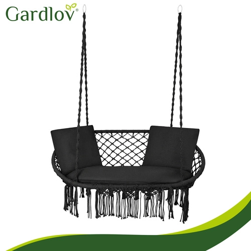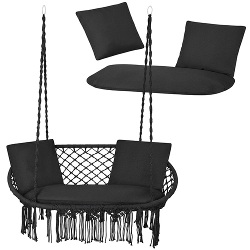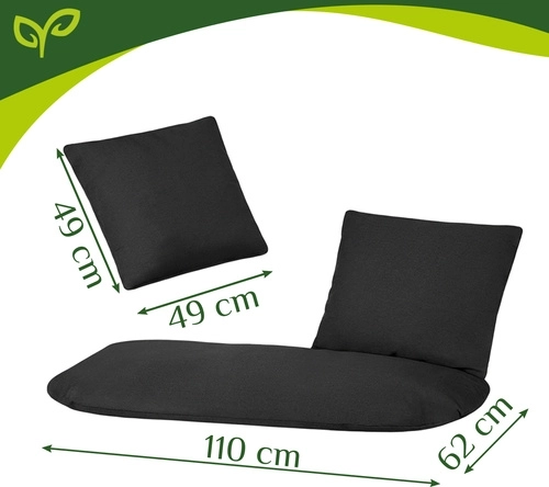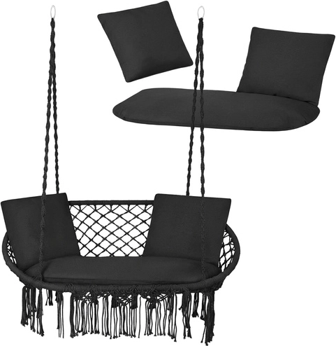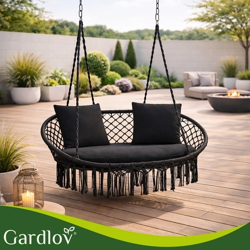 Súčasťou je veľký sedák pre dve osoby a 2 mäkké vankúšiky na oporu chrbta a hlavy. Vďaka presnému tvaru vankúše vyplnia sedaciu plochu a zlepšia stabilitu sedenia. Univerzálny čierny dizajn skvele zapadne do väčšiny aranžmánov – od moderných terás až po útulné altánky.