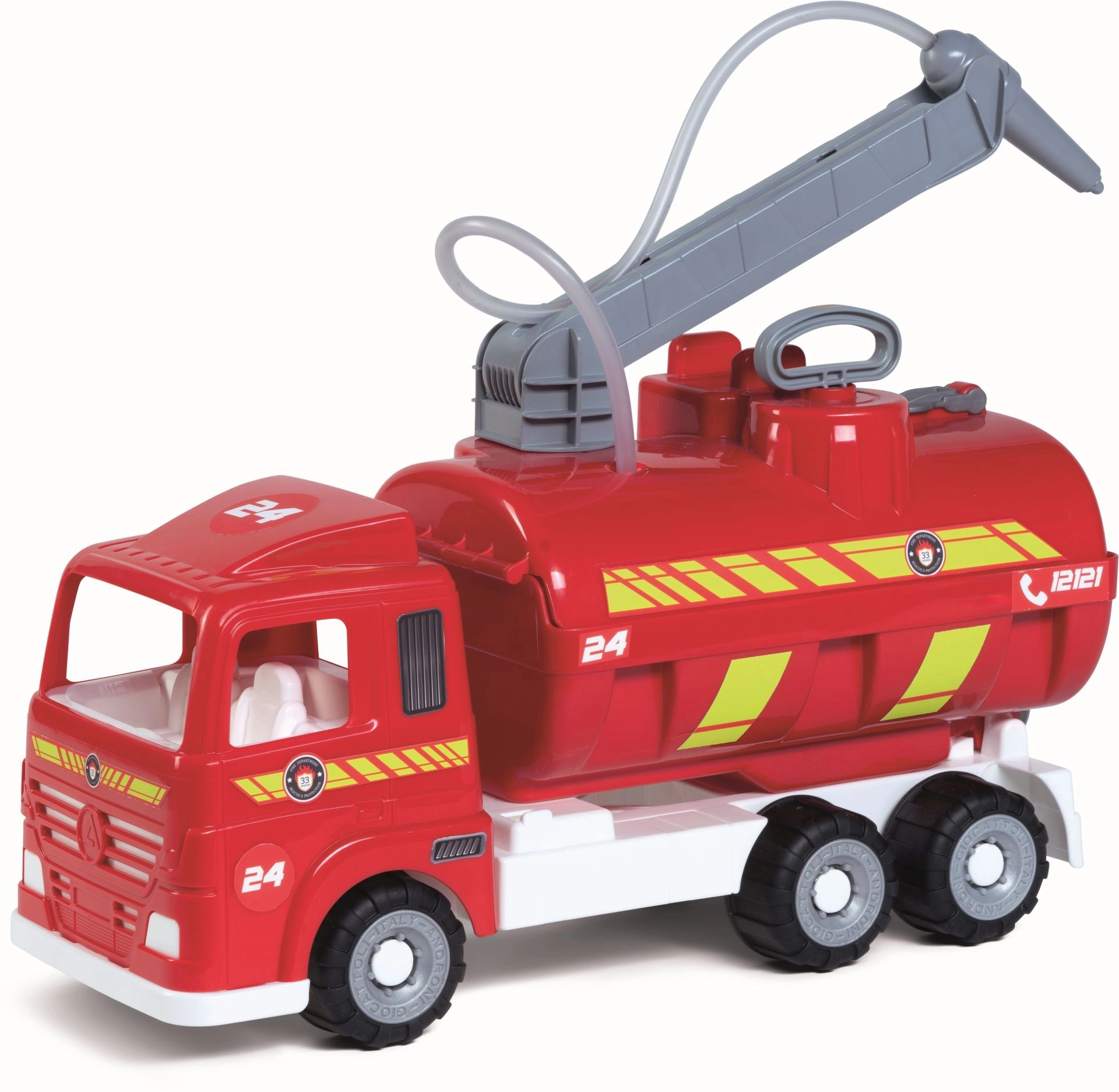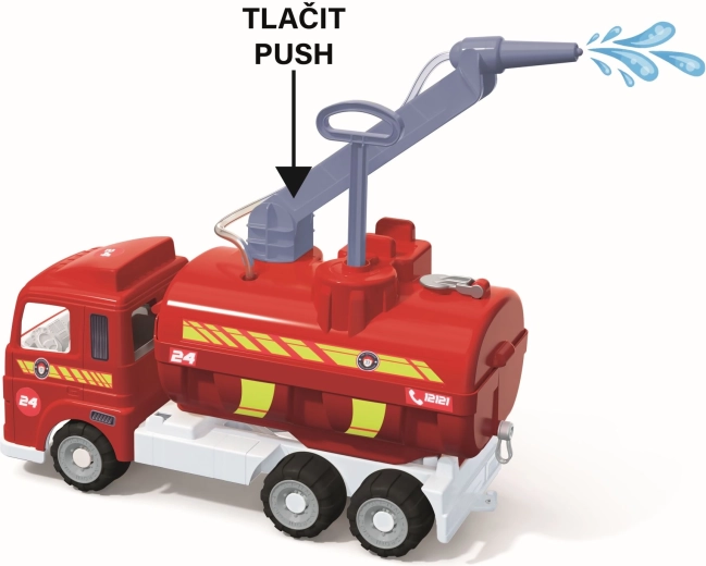 Cisterna a hadica s tryskou vytvárajú autentický vzhľad hasičského vozidla a podporujú kreatívnu hru.